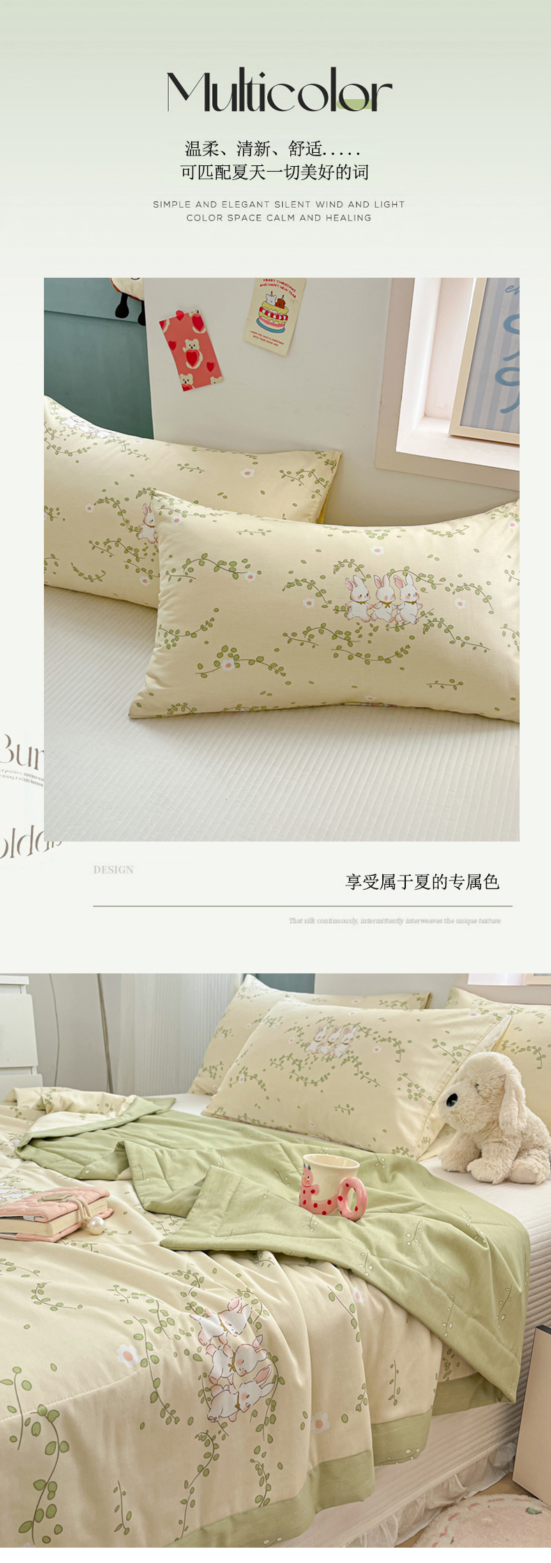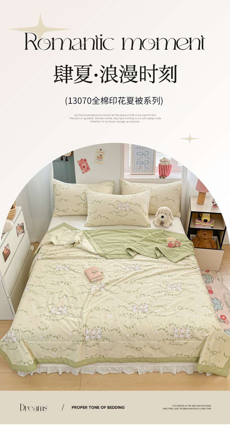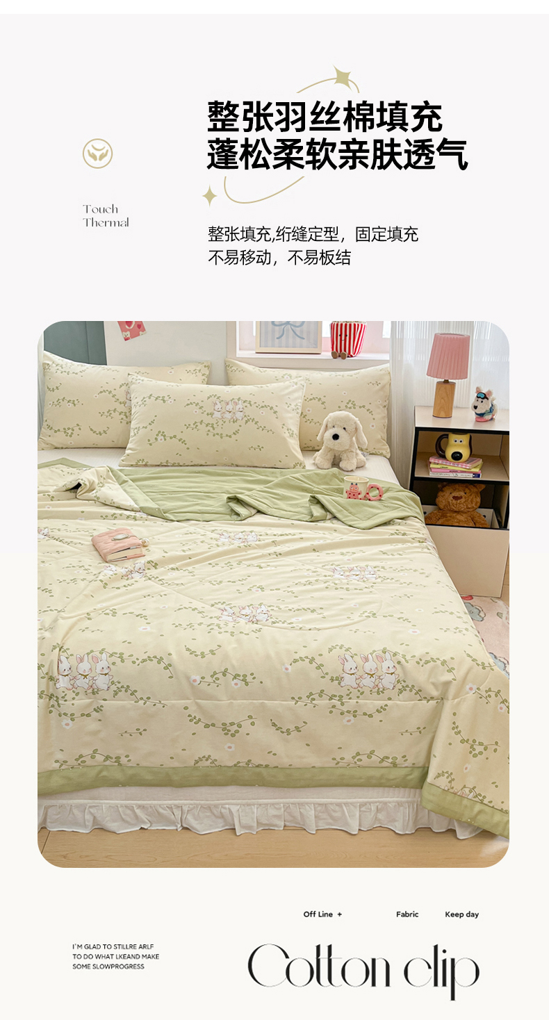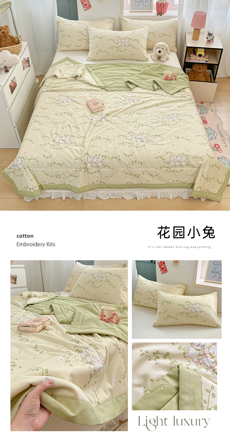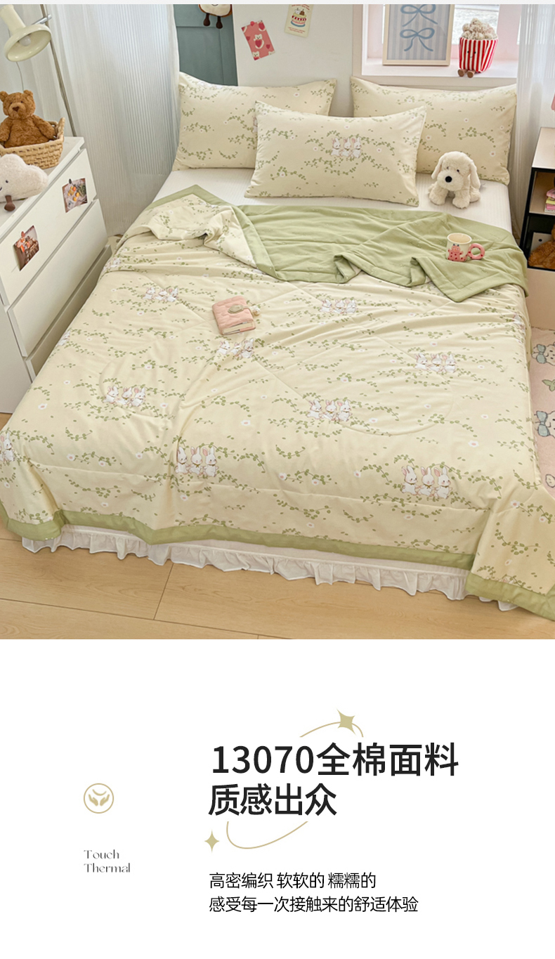 • 91家纺网 家纺一手货源 找家纺 寻米 2025新款13070全棉纯棉印花夏被夏凉被空调被 花园小兔
