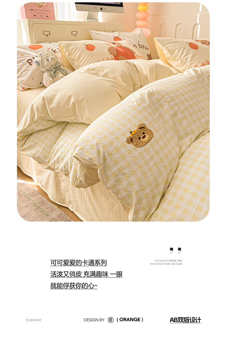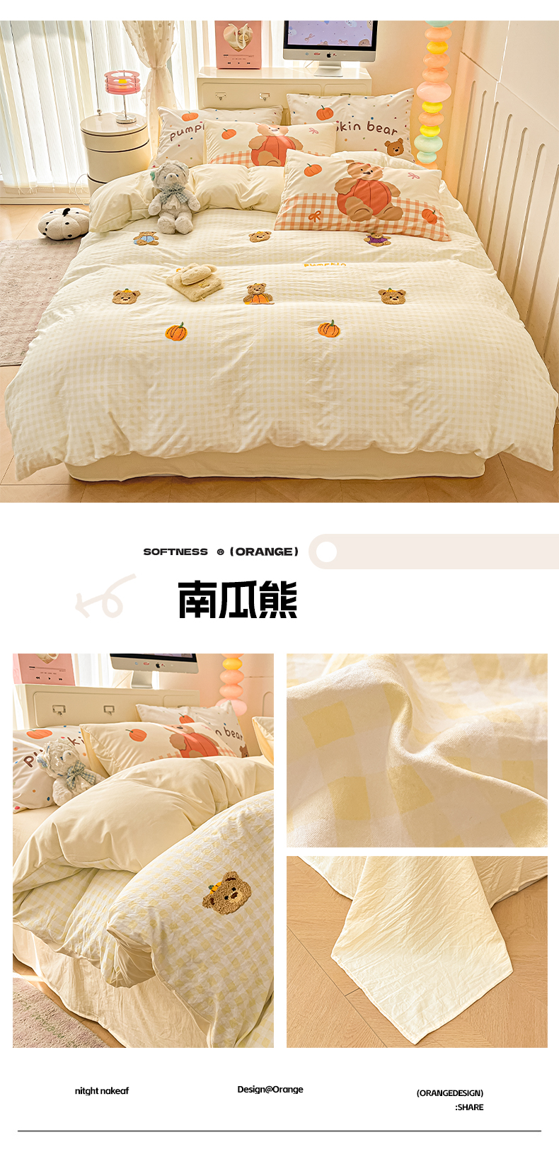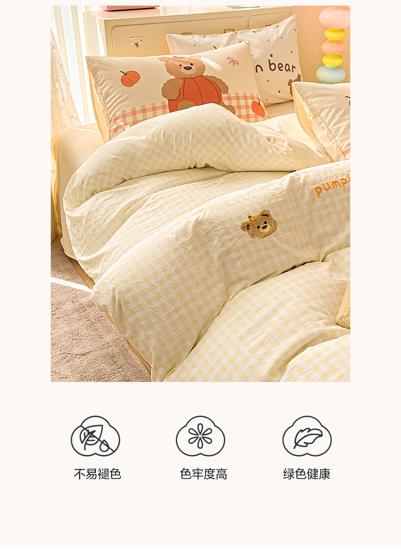 商品名称:如一 2025新款A类数码枕套卡通毛巾绣水洗棉四件套 南瓜熊