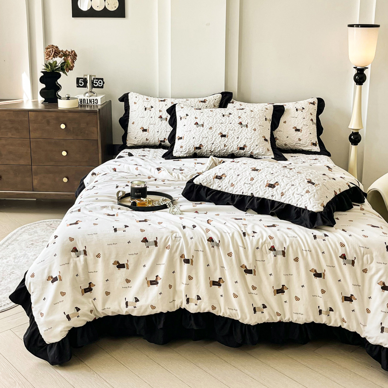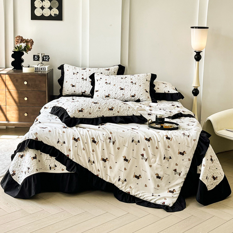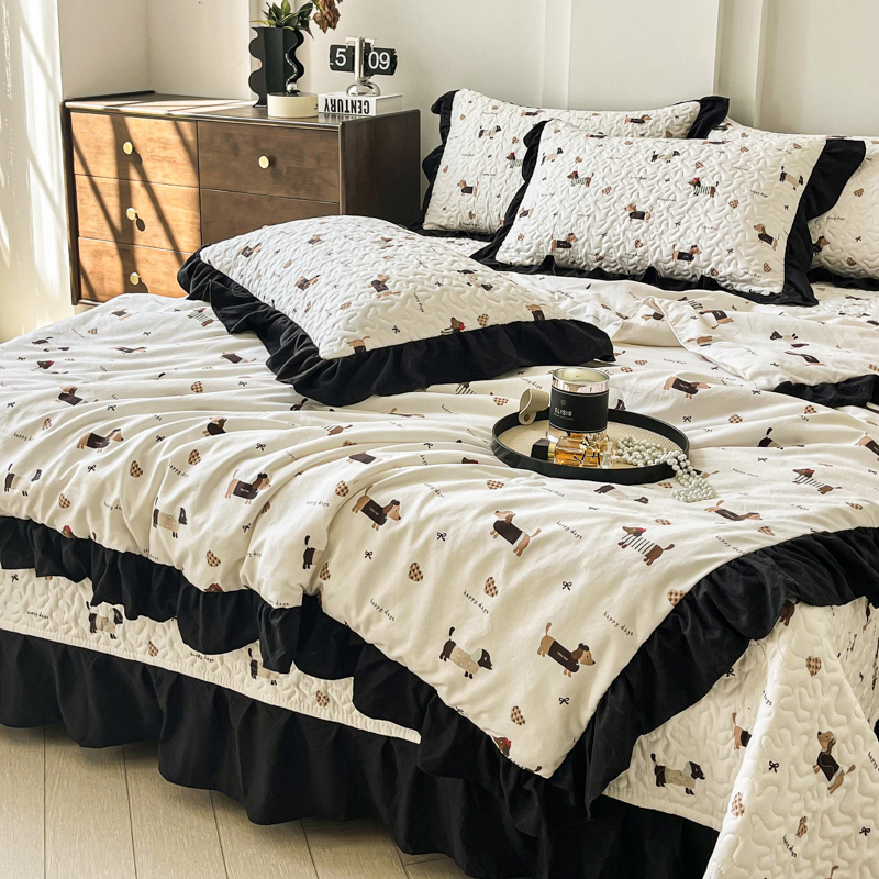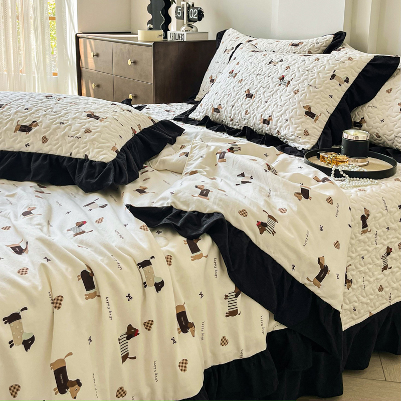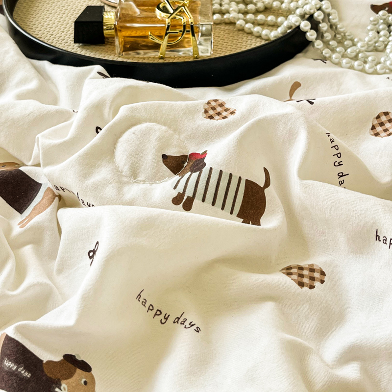 欧尚2025新款ins水洗棉床盖款夏被四件套 香肠狗