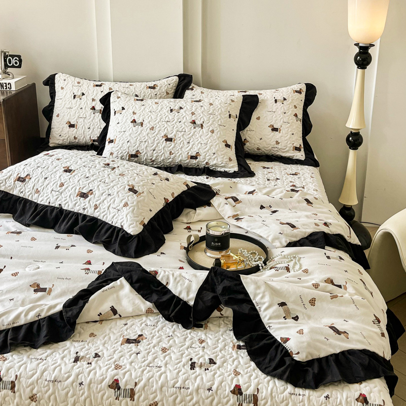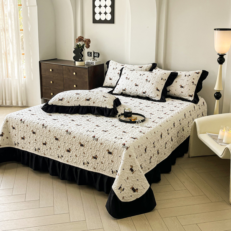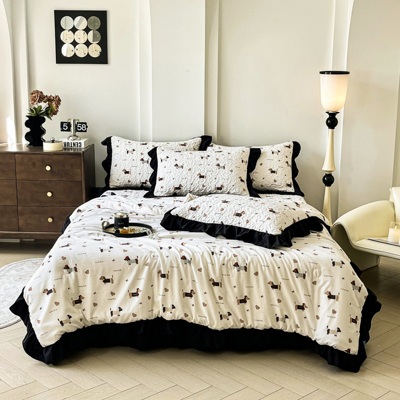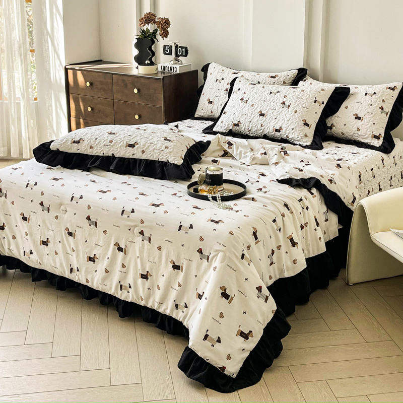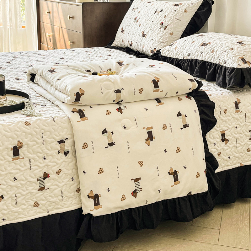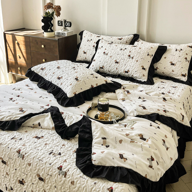 欧尚2025新款ins水洗棉床盖款夏被四件套 香肠狗