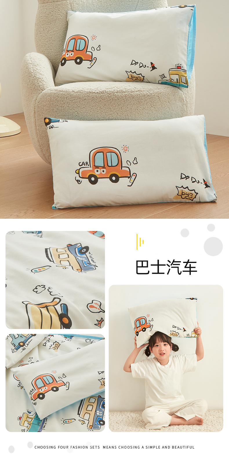 商品名称:艾佳宝贝 2025新款A类全棉纯棉儿童单枕套多尺寸可拆式枕头 巴士汽车