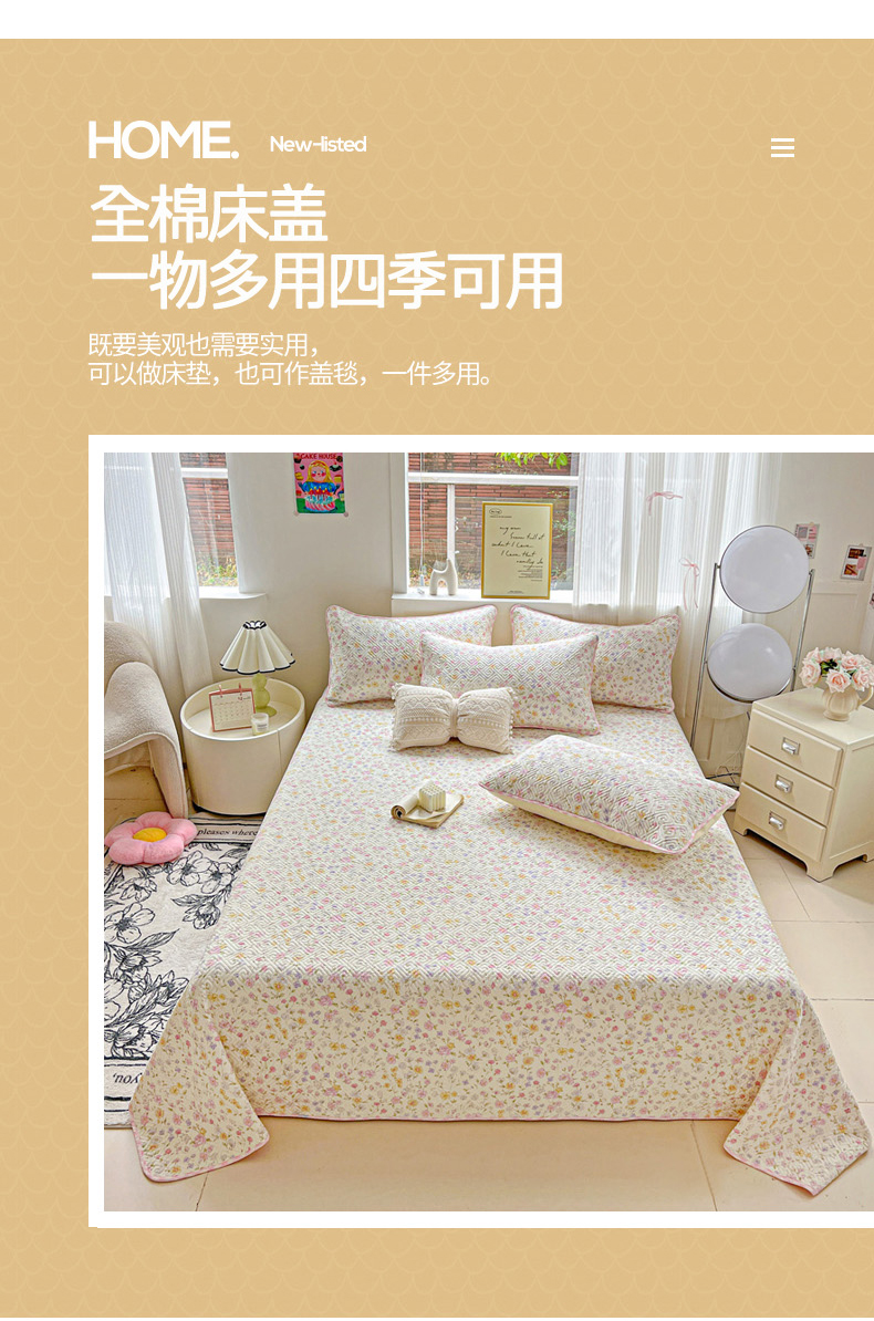 当前位置: 91家纺网 > 商品网购 > 床上用品 > 床盖 > 羽爱家纺 2025新款A类双面全棉印花床盖套件 向阳花开