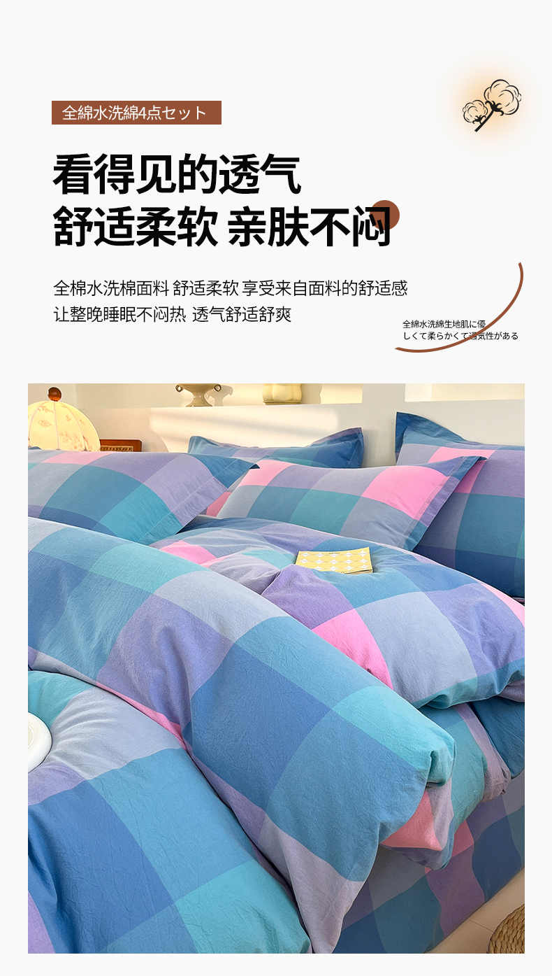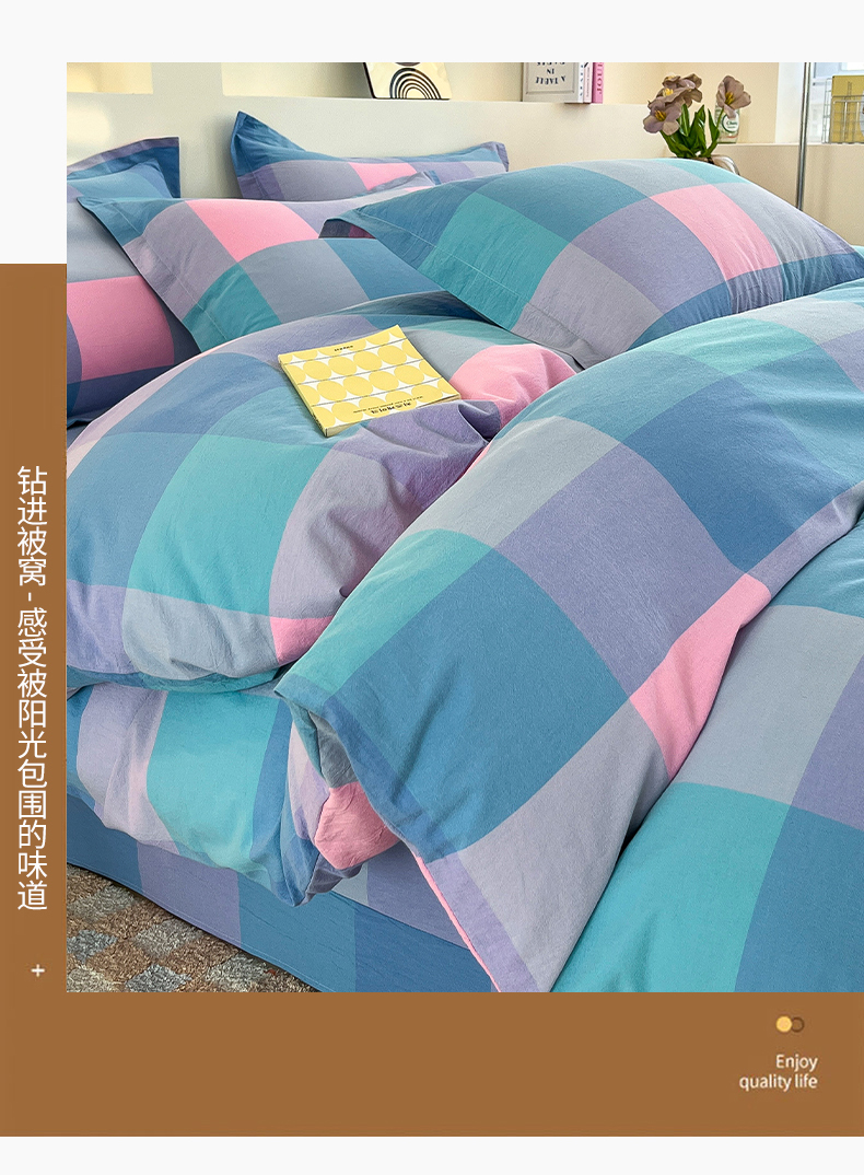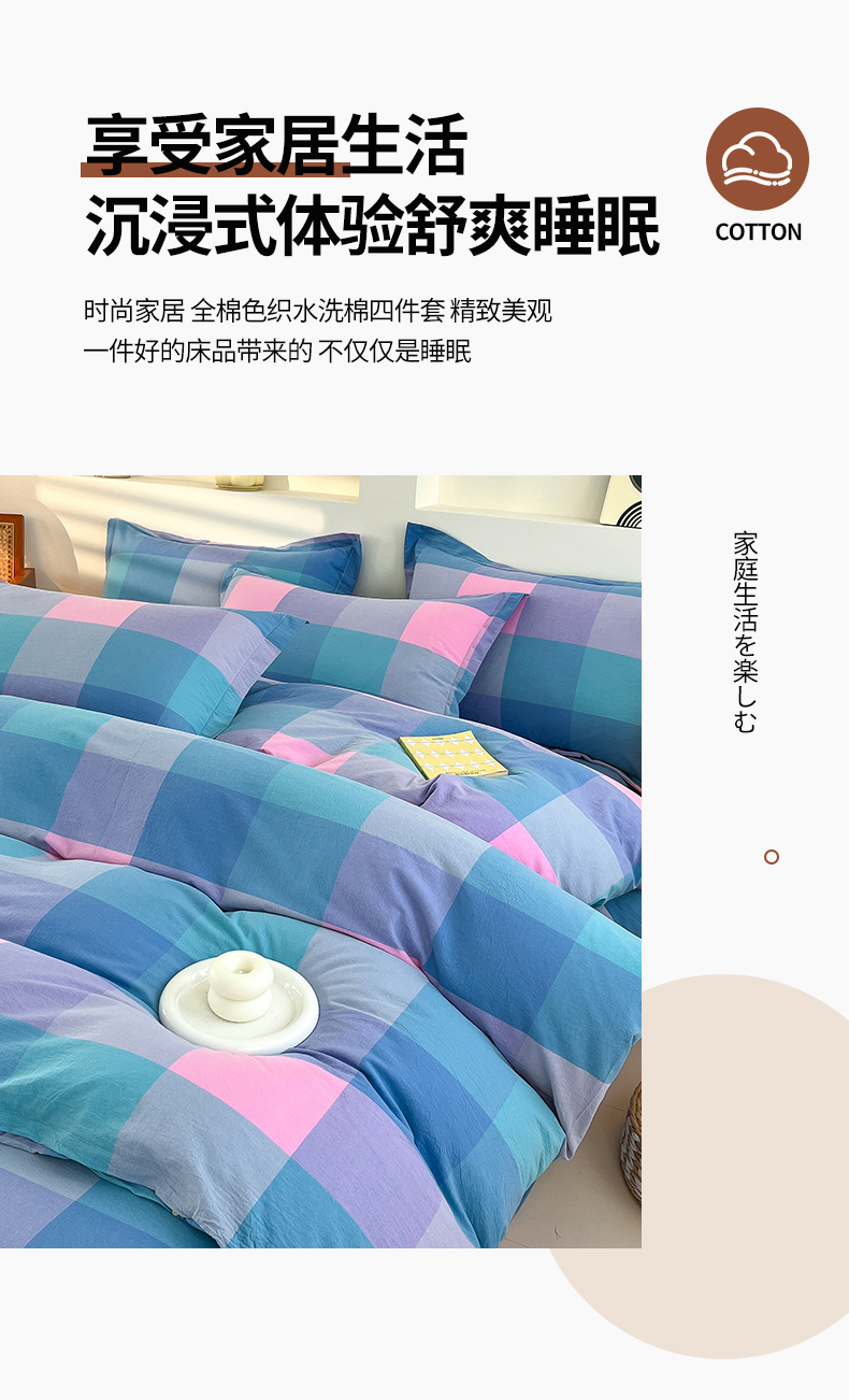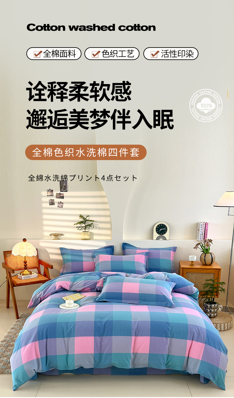 (总)金窝窝家纺 2025新款纯棉水洗棉四件套,爱锦灰,巴黎彩格,巴黎灰,春意盎然淡绿色,大发格粉蓝,大发格绿,多爱多粉,繁星奶咖米格,假日阳光彩格,绿咖时尚格,绿小格,米格,浅蓝小格,三彩格,时尚风蓝灰,相遇兰橙,相遇小粉,意境蓝灰,优雅粉格,优雅橘,优雅兰