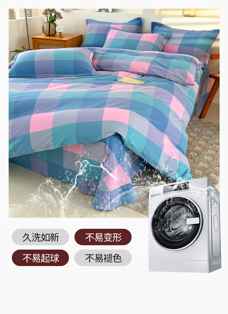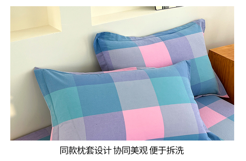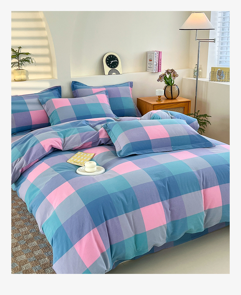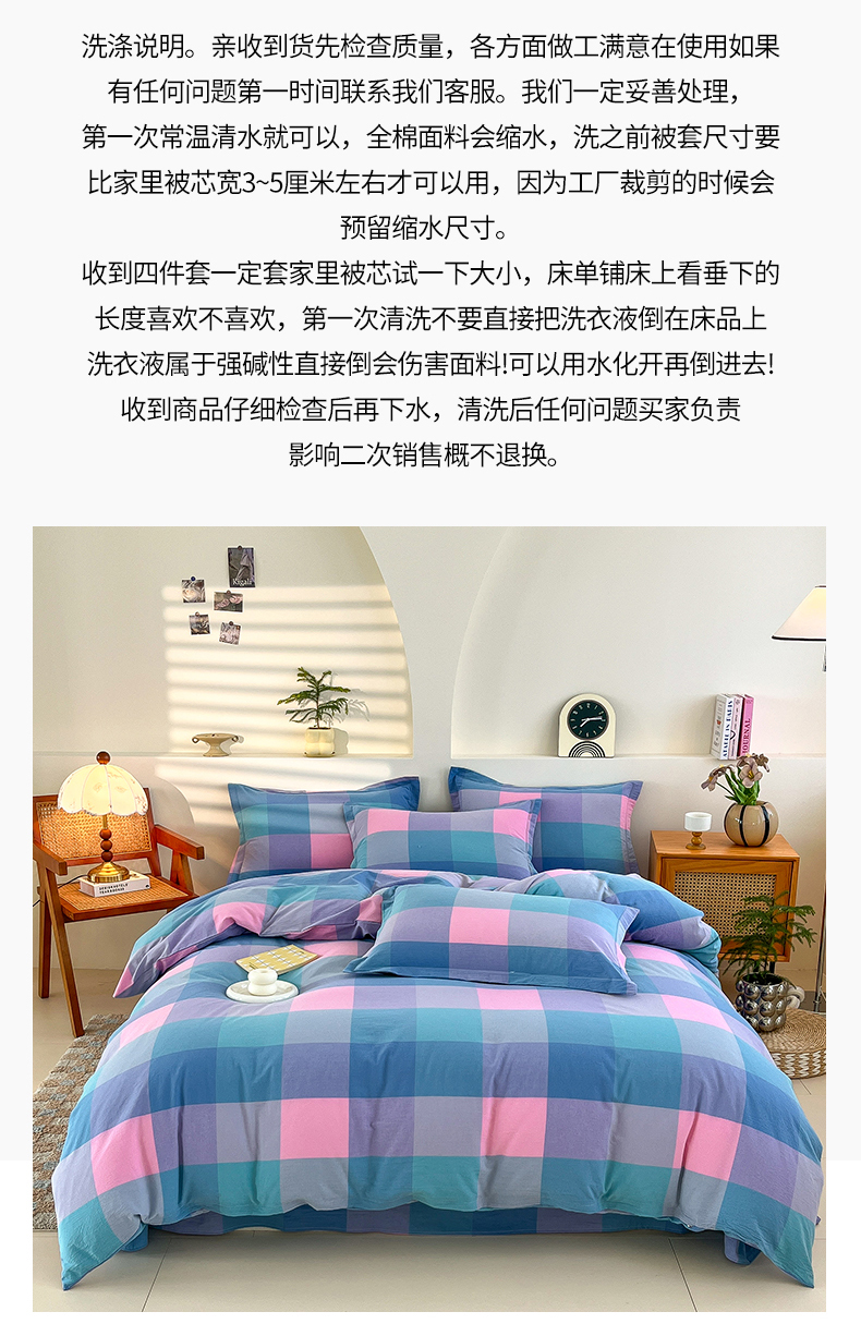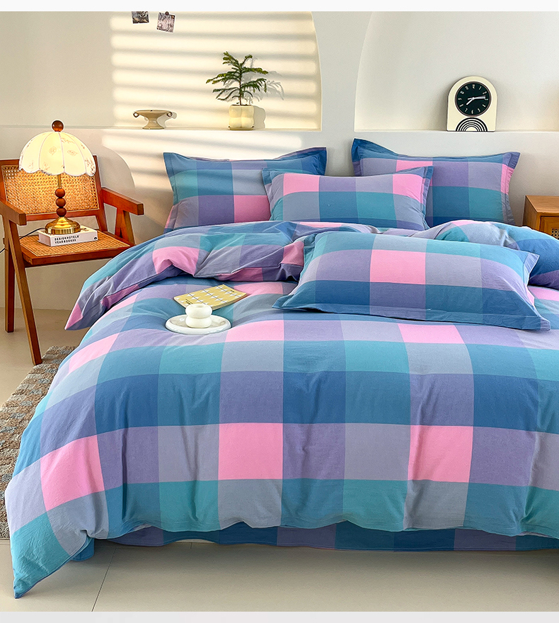 商品名称:金窝窝家纺 2025新款纯棉水洗棉四件套 大发格粉蓝