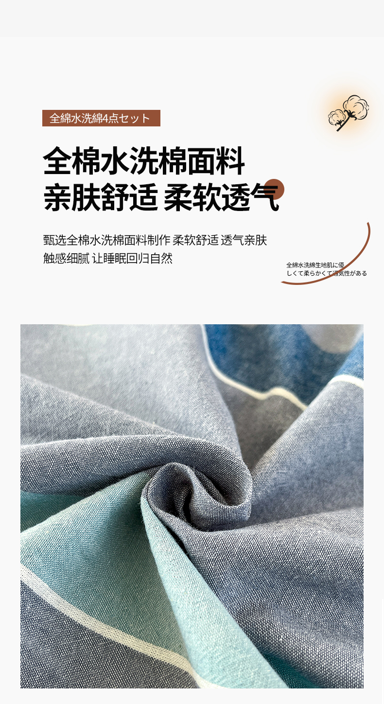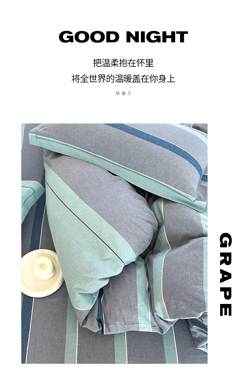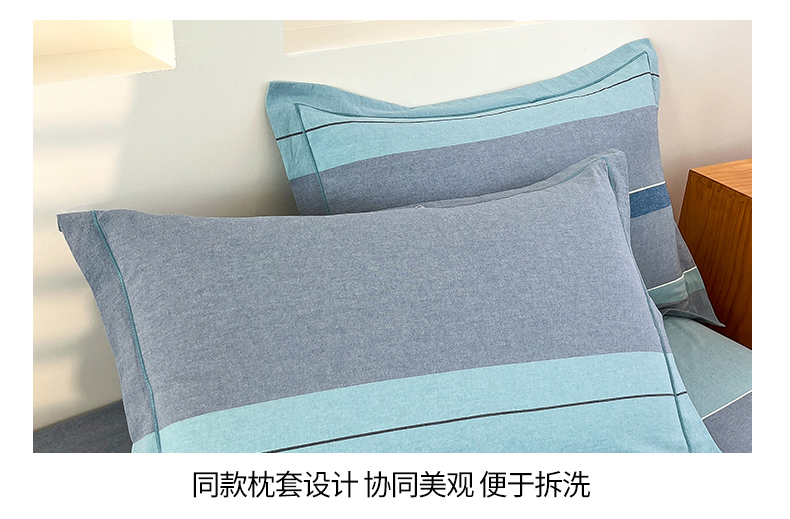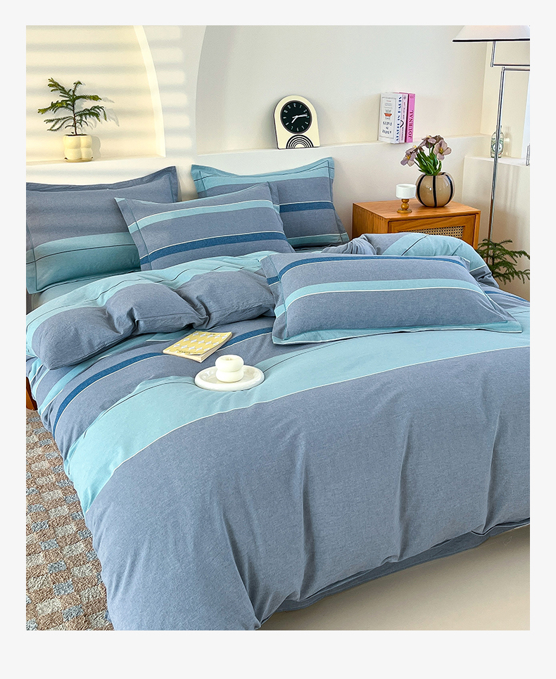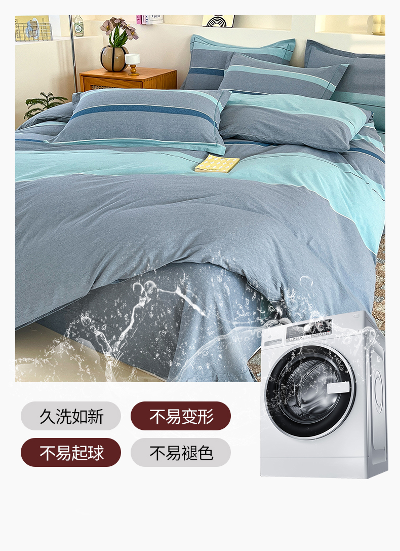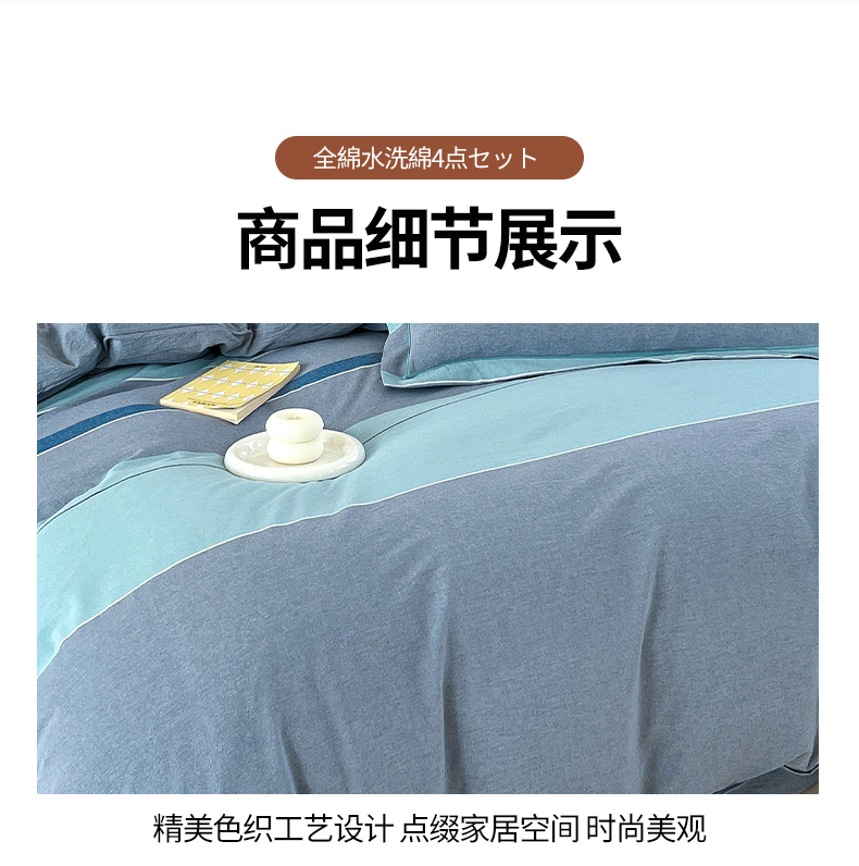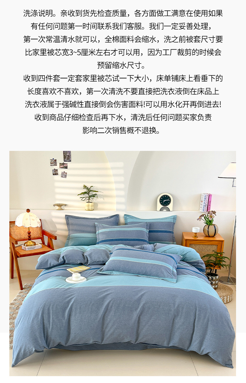 商品名称:金窝窝家纺 2025新款纯棉水洗棉四件套 时尚风蓝灰