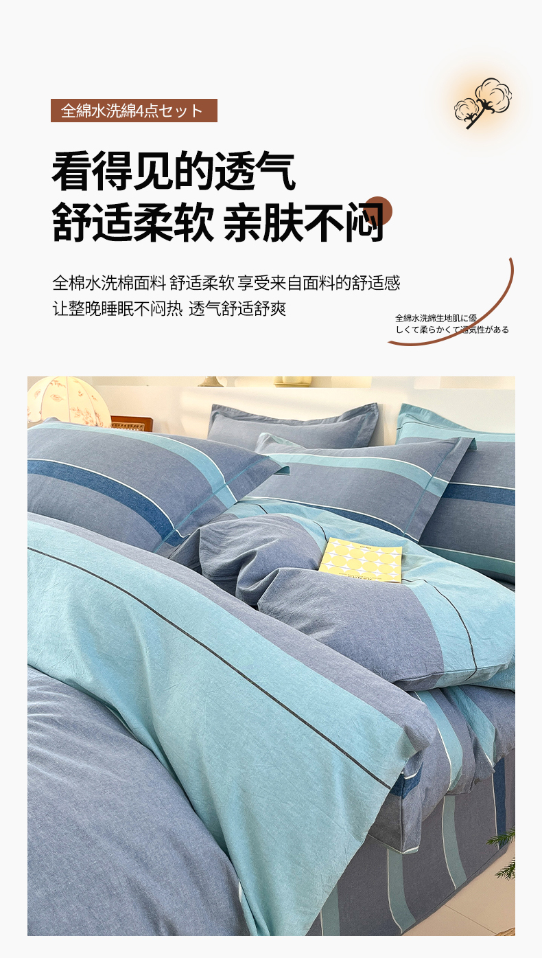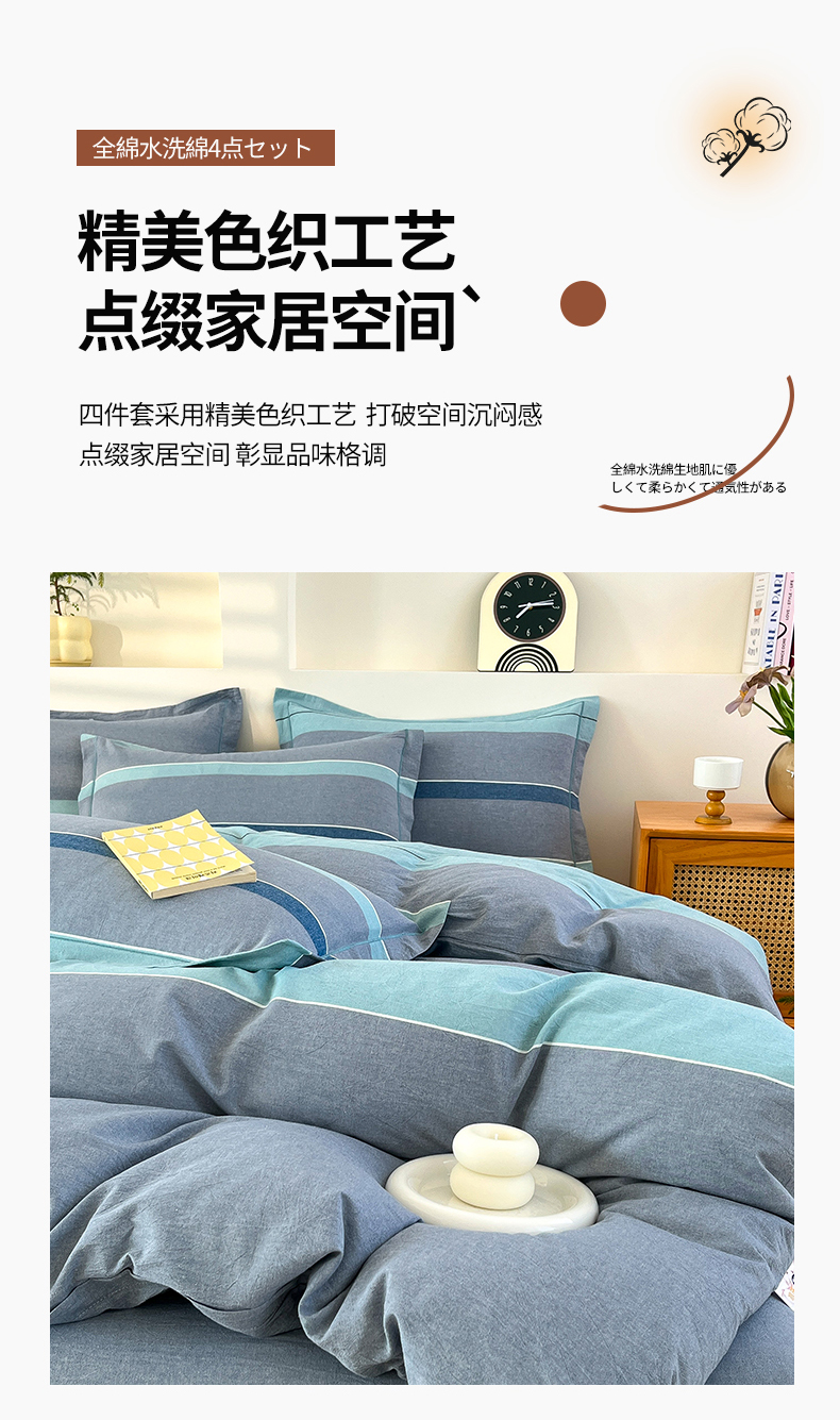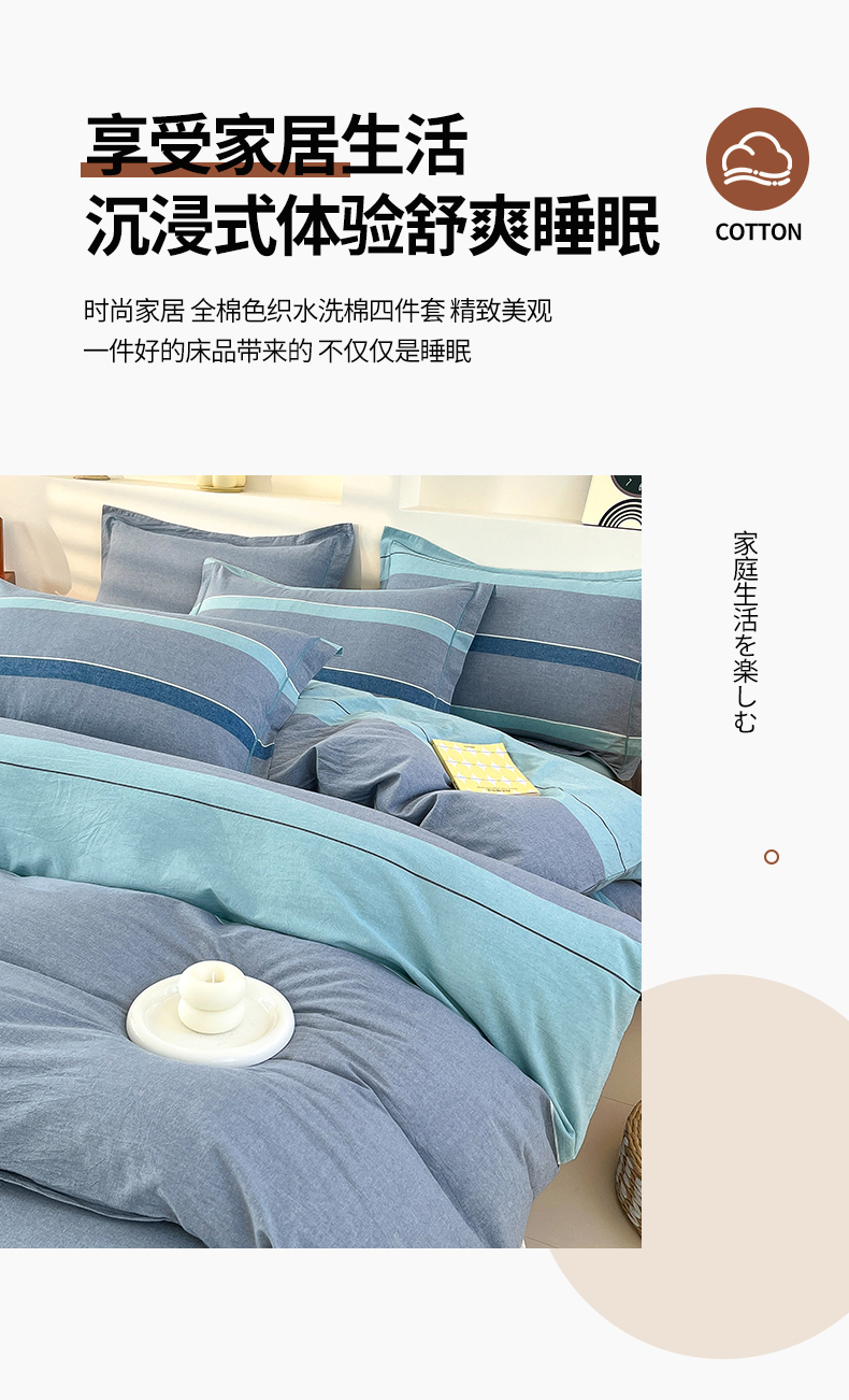 金窝窝家纺 2025新款纯棉水洗棉四件套 时尚风蓝灰