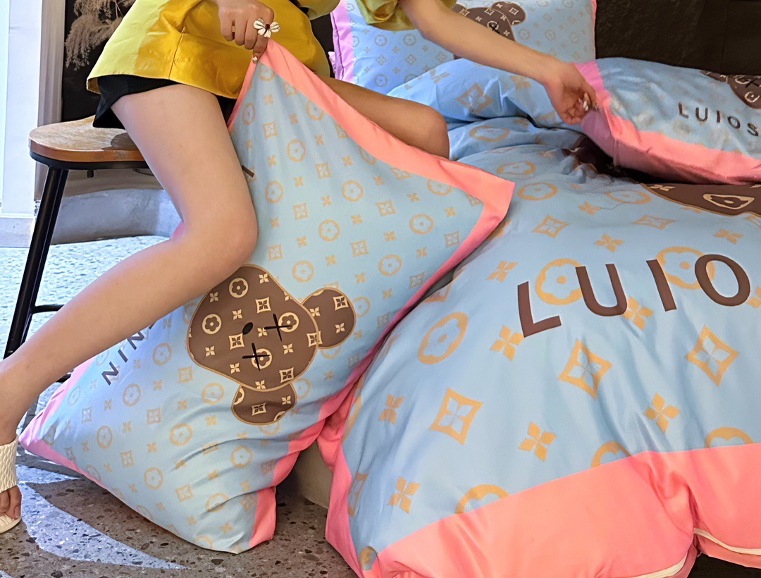 丽斐纺织 2025新款水洗冰丝数码印花四件套 油画熊