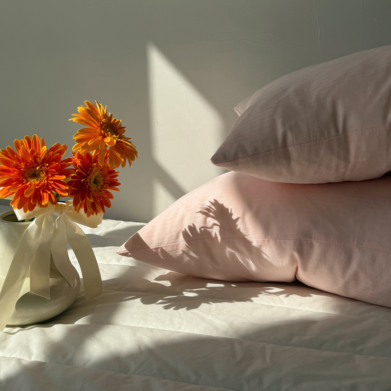 蜜宿 2025新款全棉人字纹枕套 樱粉