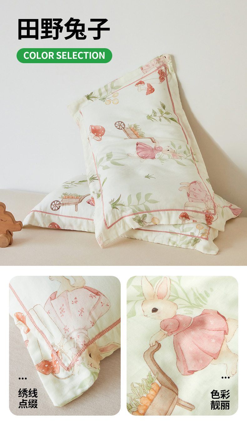 (总)嗨生活 2025新款全棉双层纱豆豆被 儿童被 春秋被 冬被 幼儿园被子,草莓兔兔,花丛小兔,米菲兔,汽车乐园,挖机恐龙,玩具屋,小海豚,熊猫盼盼