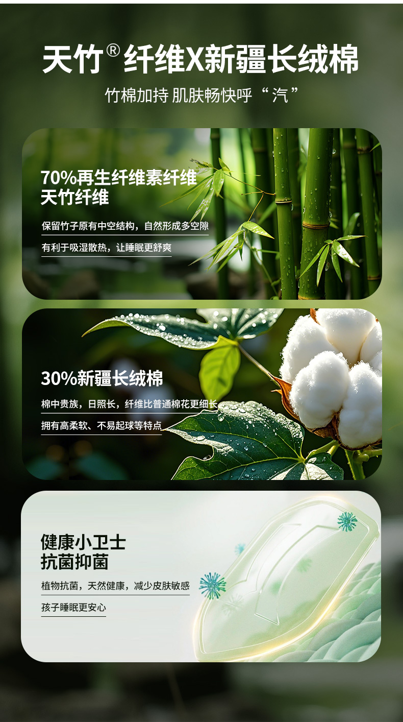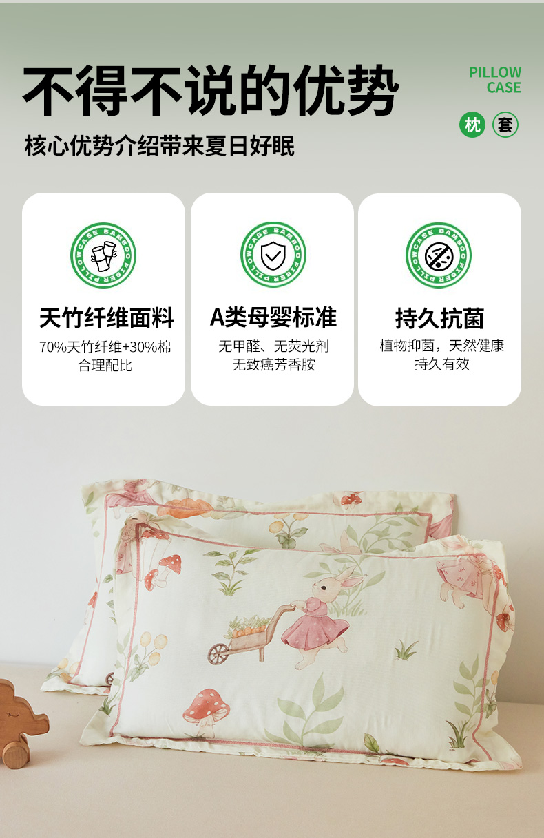 商品名称:(总)嗨生活2025新款天竹系列A类竹纤维四层纱枕套 儿童枕套 幼儿园枕套