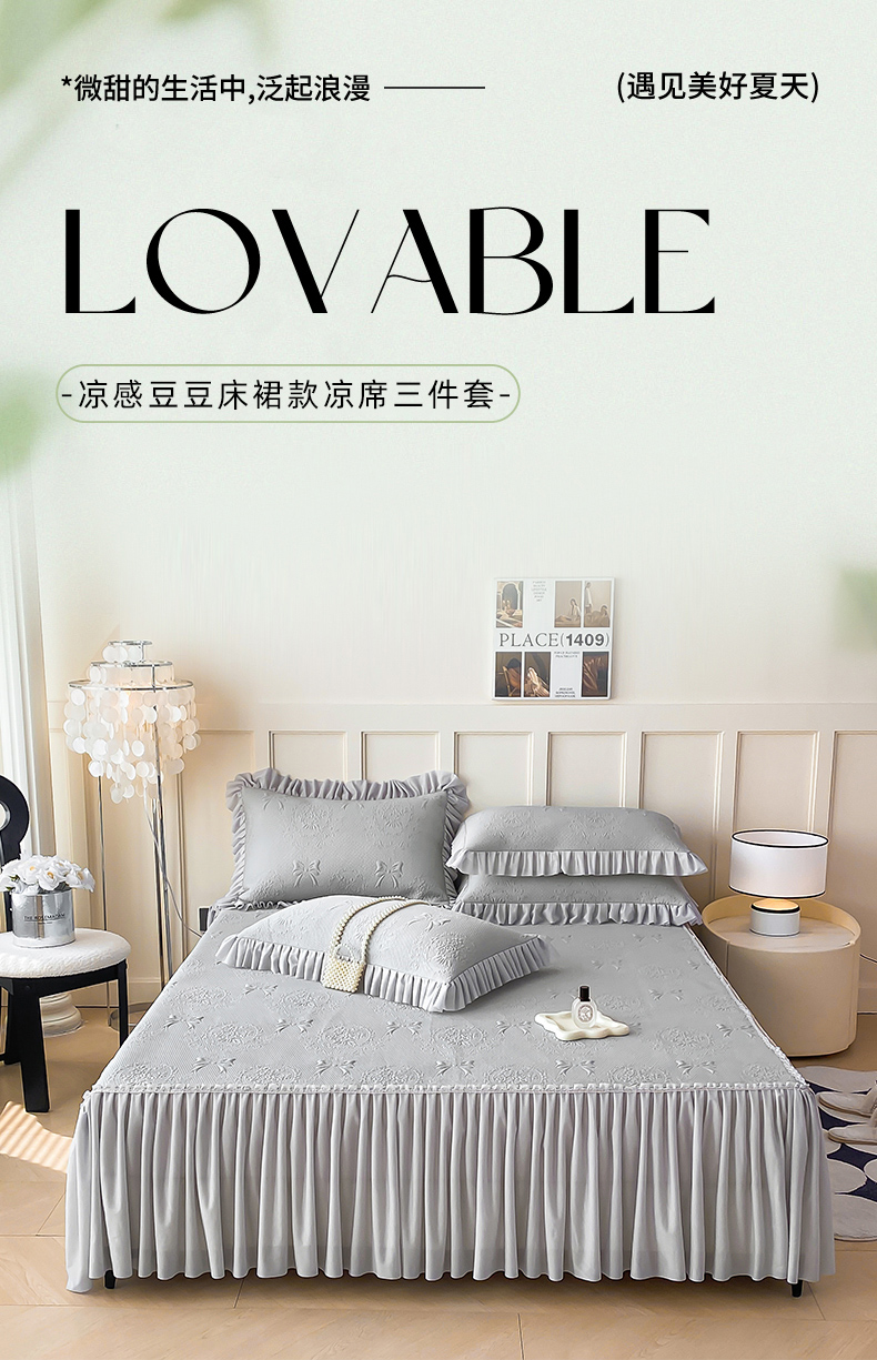 (总)其奥 2025新款复合三明治床裙款凉豆豆凉席三件套,约定-豆沙粉,约定-清香绿,约定-绅士灰,约定-优雅蓝