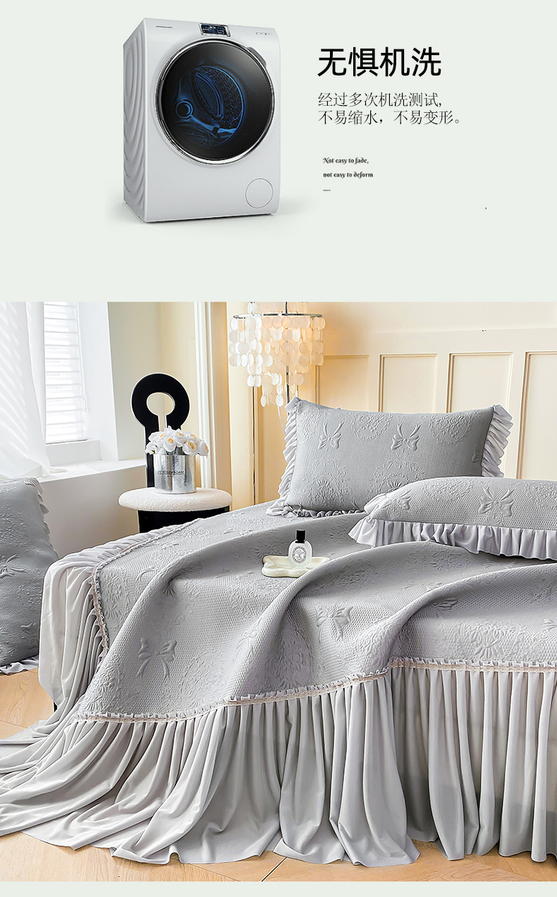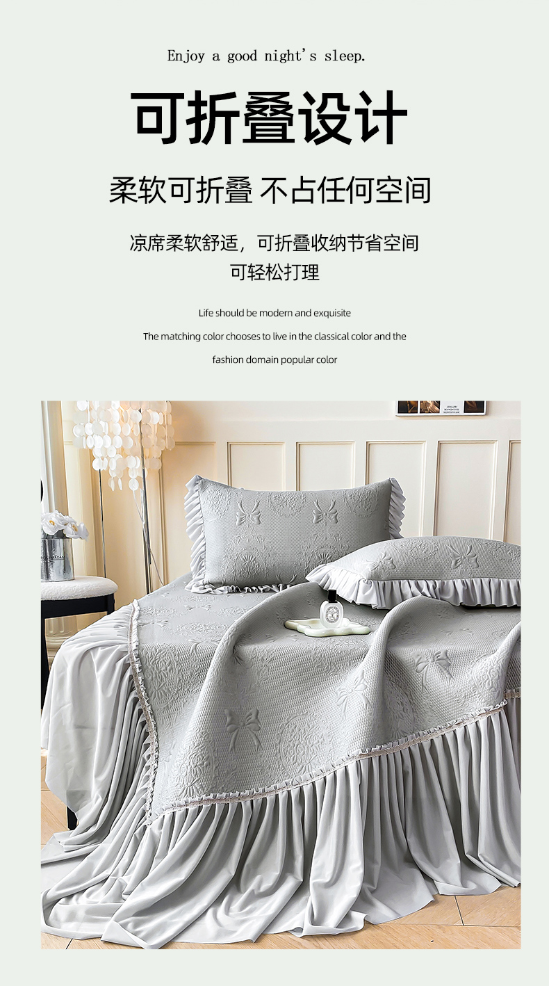 商品名称:其奥 2025新款复合三明治床裙款凉豆豆凉席三件套 约定-绅士灰