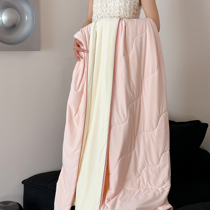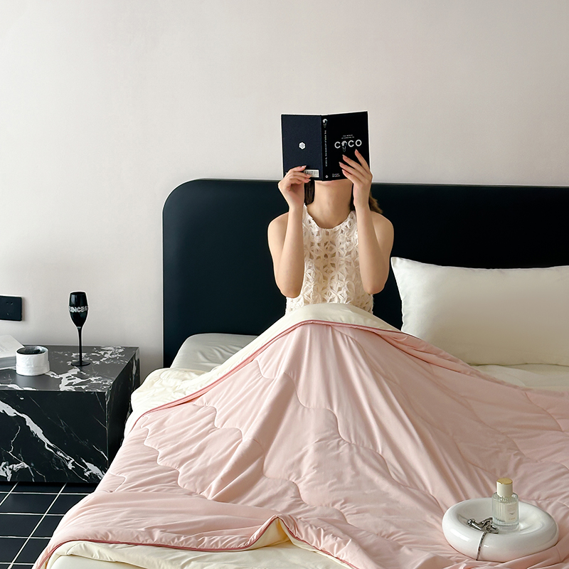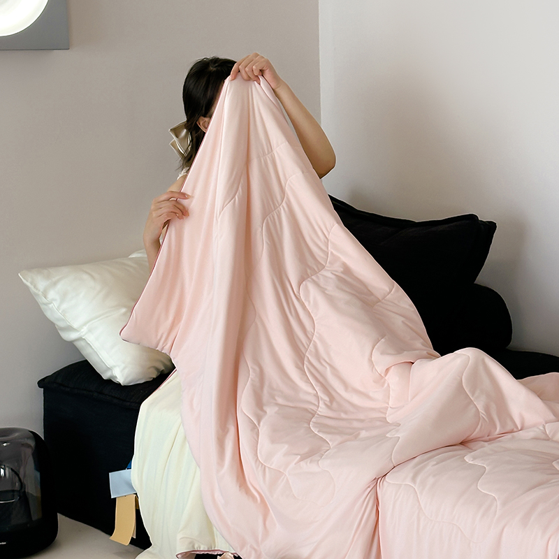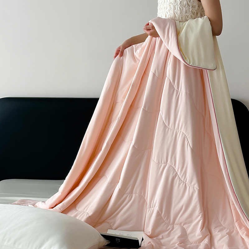时年家纺 2025新款升级版180克高定即刻凉感夏被 奶油粉