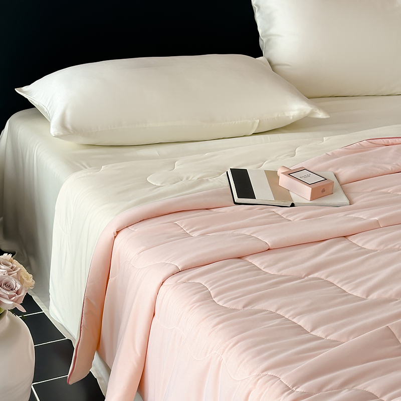 商品名称:时年家纺 2025新款升级版180克高定即刻凉感夏被 奶油粉
