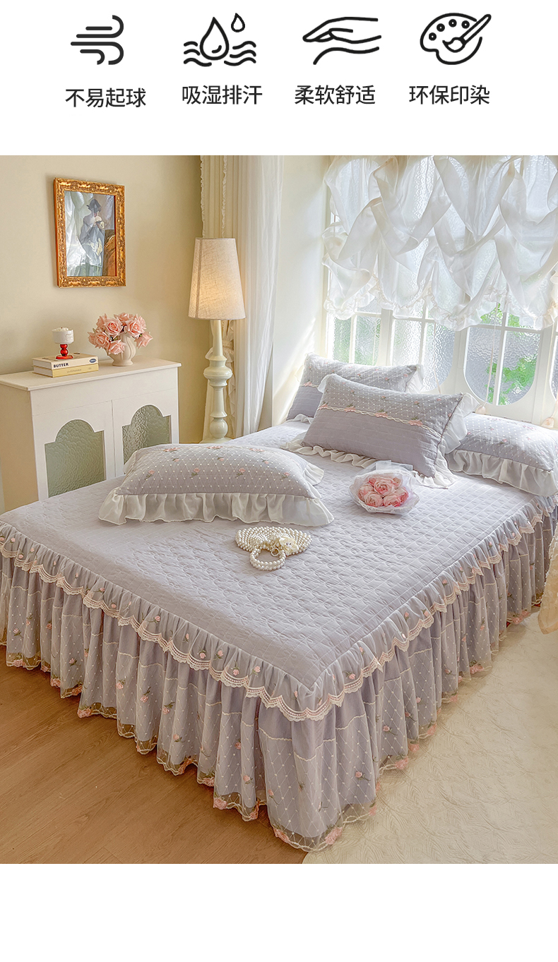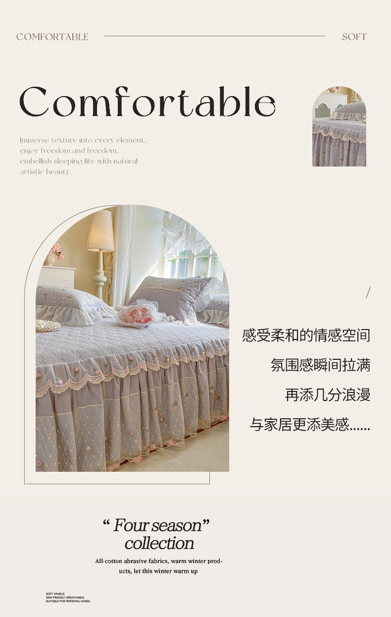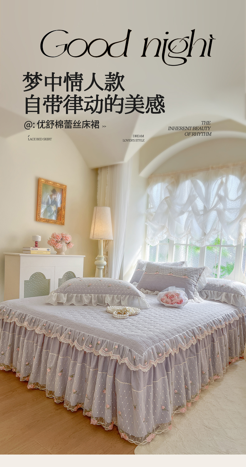 当前位置: 91家纺网 > 商品网购 > 床品套件 > 三件套 > 2025新款优舒棉蕾丝花边床裙三件套-玛格丽 香芋紫