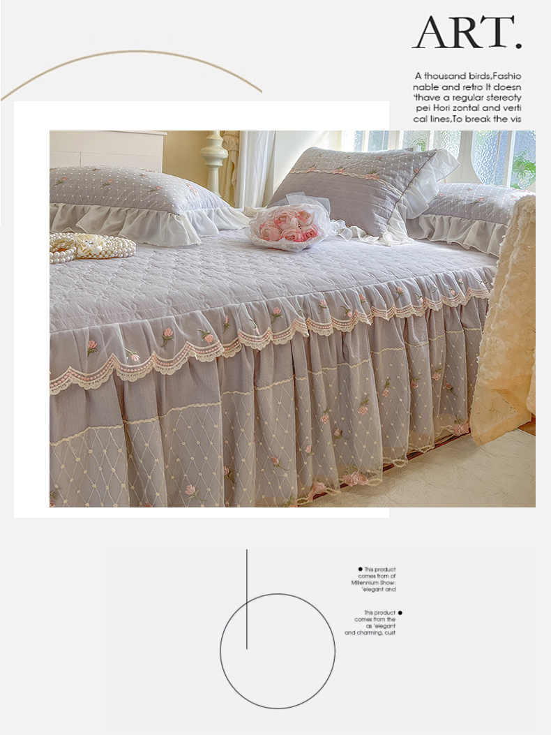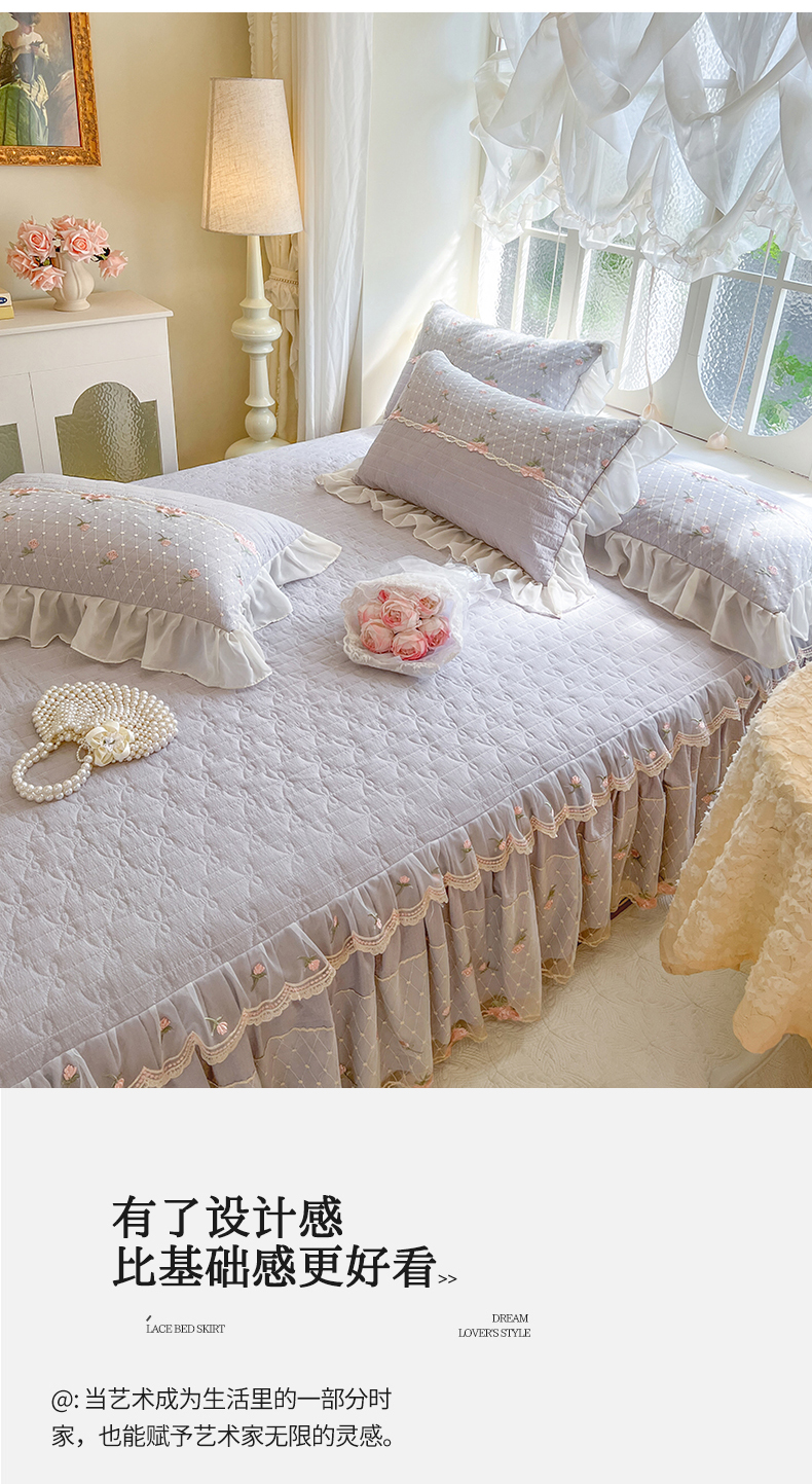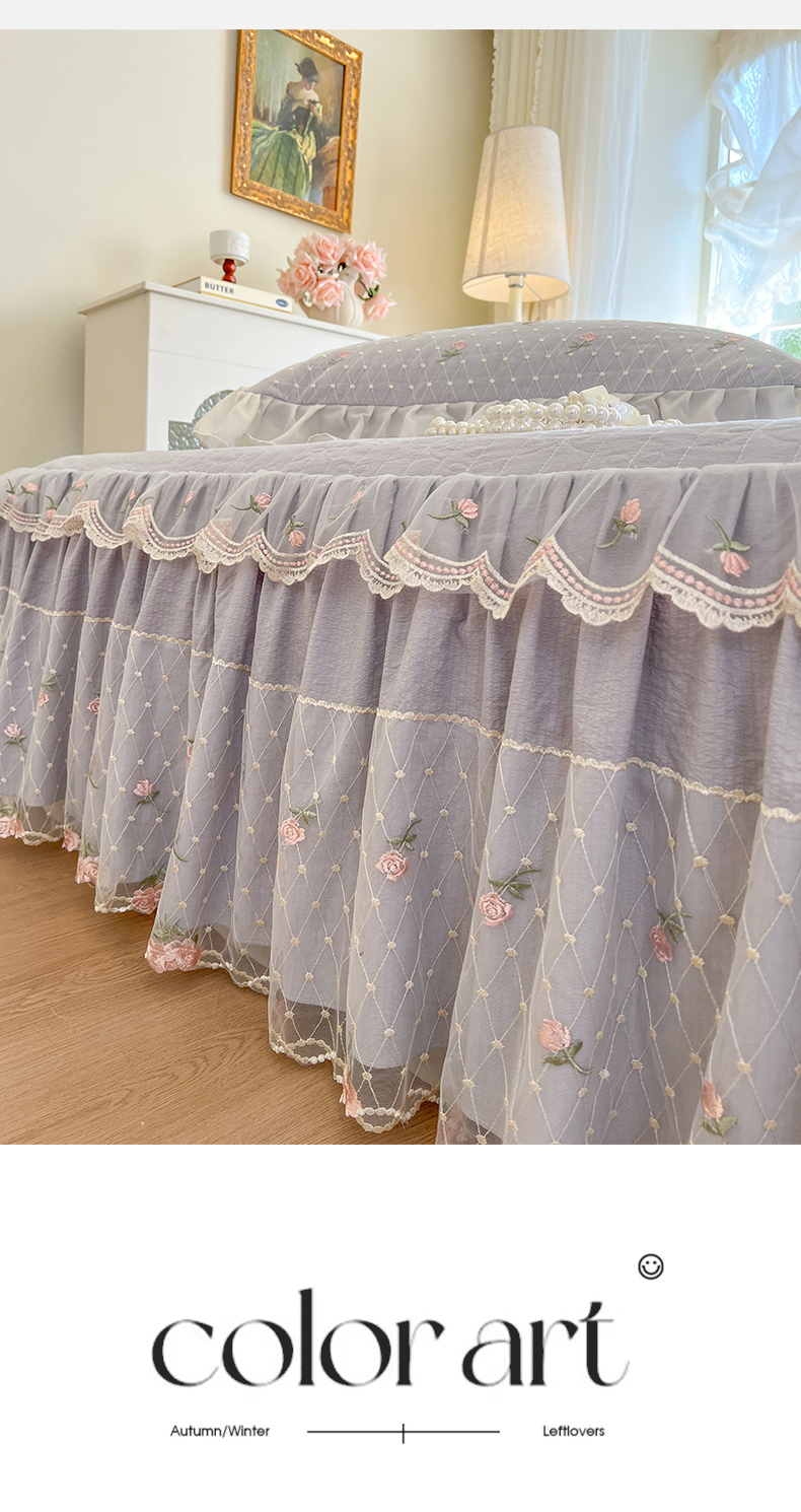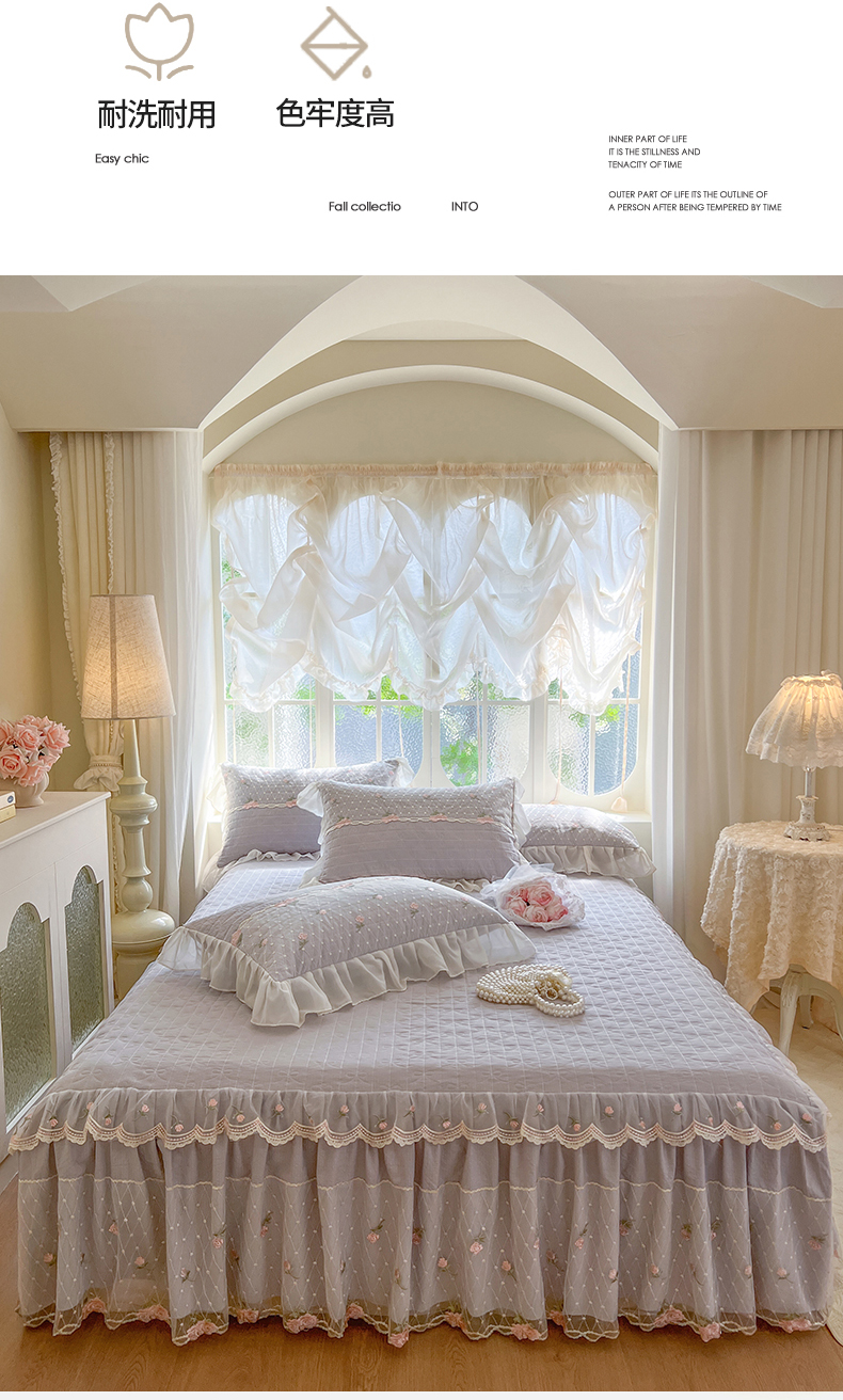 当前位置: 91家纺网 > 商品网购 > 床品套件 > 三件套 > 2025新款优舒棉蕾丝花边床裙三件套-玛格丽 香芋紫