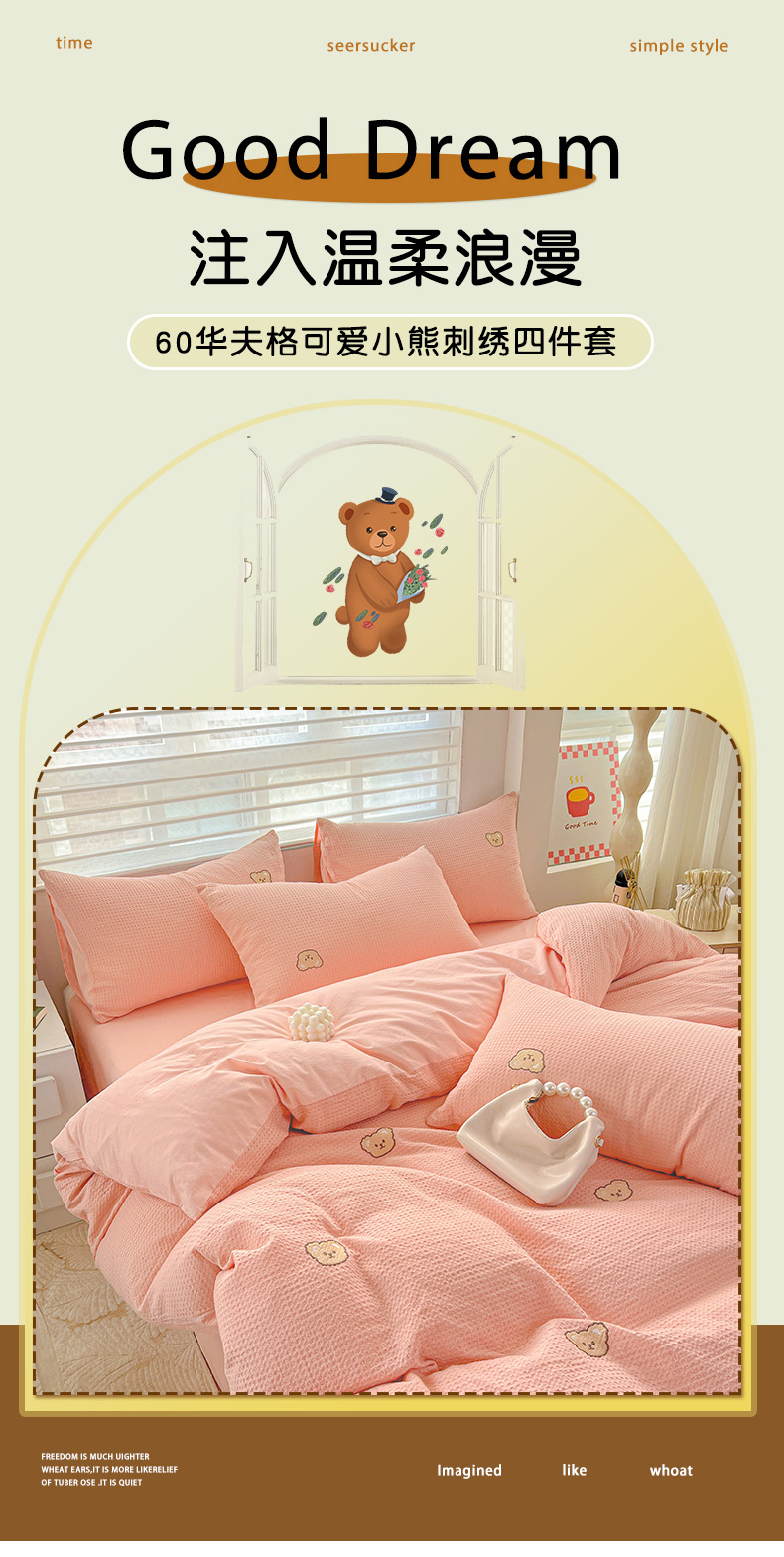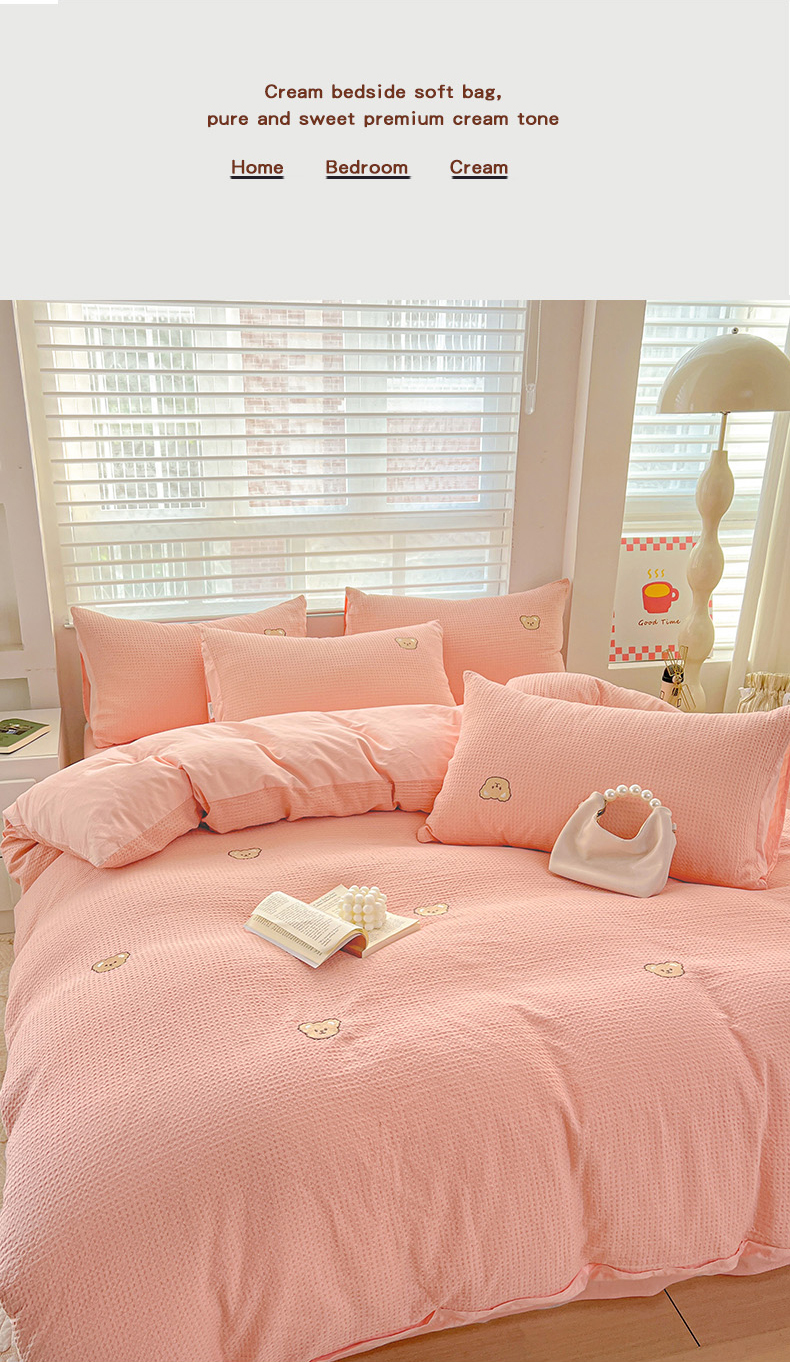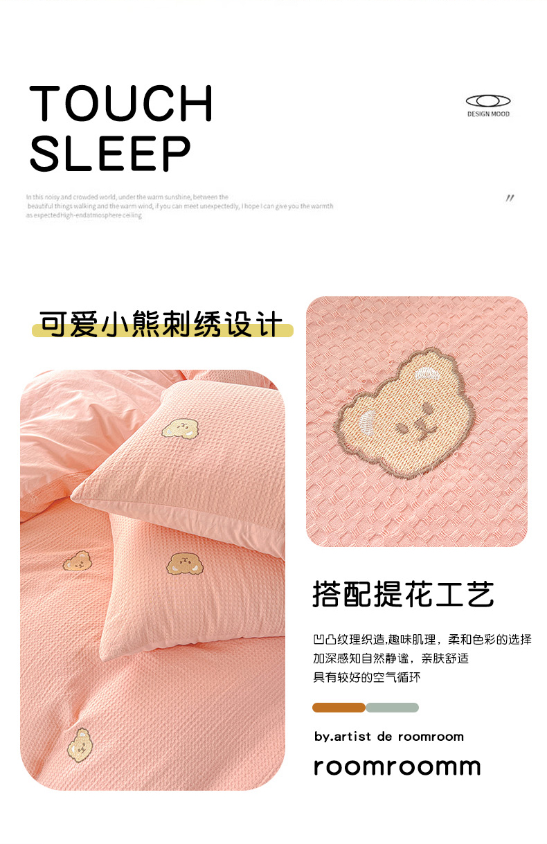 当前位置: 91家纺网 > 商品网购 > 床品套件 > 四件套 > 全棉普通四件套 > 静家居 2025新款全棉纯棉华夫格北欧小熊刺绣四件套系列-风格一 北欧小熊-粉玉