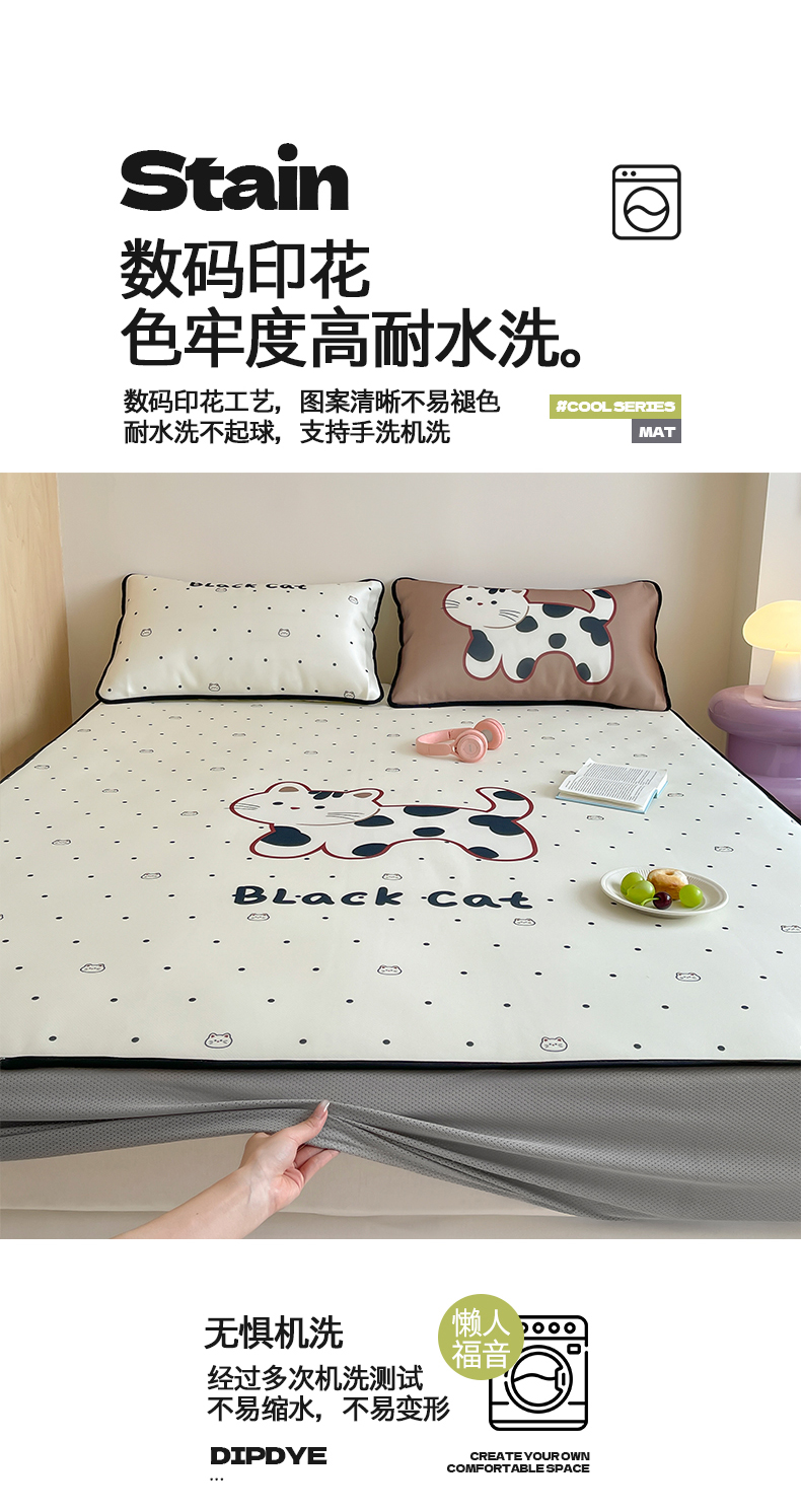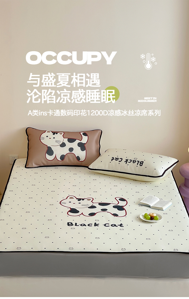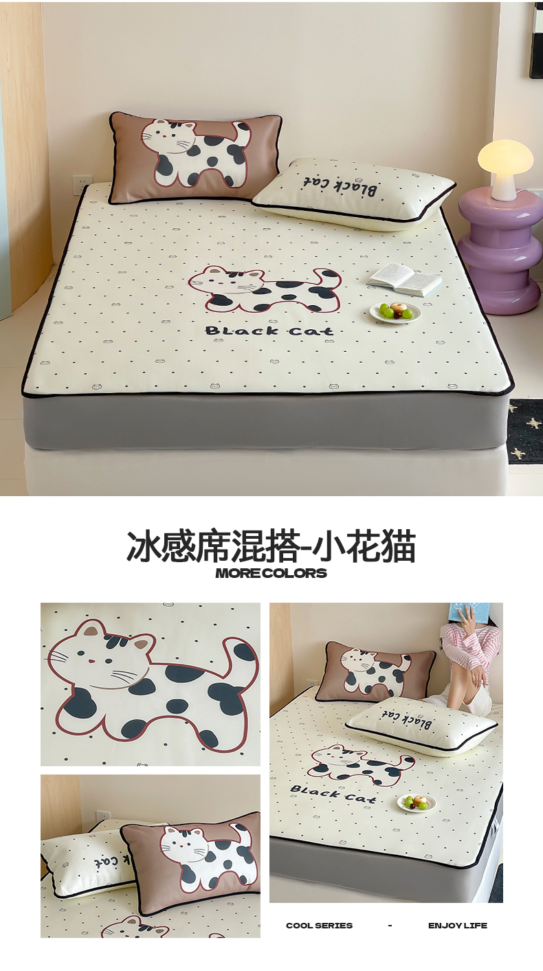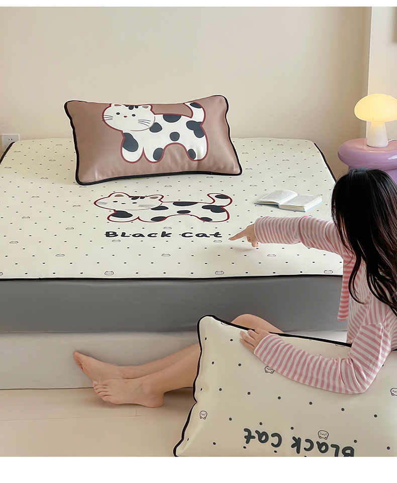 当前位置: 91家纺网 > 商品网购 > 床品套件 > 三件套 > 桃子家居 2025新款A类ins卡通数码印花1200D冰感冰丝凉席系列 冰感席混搭-小花猫