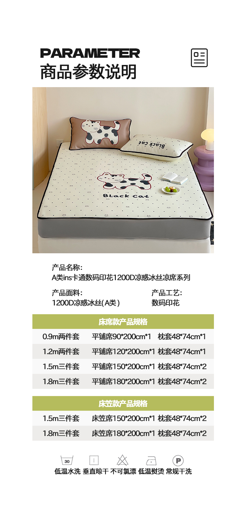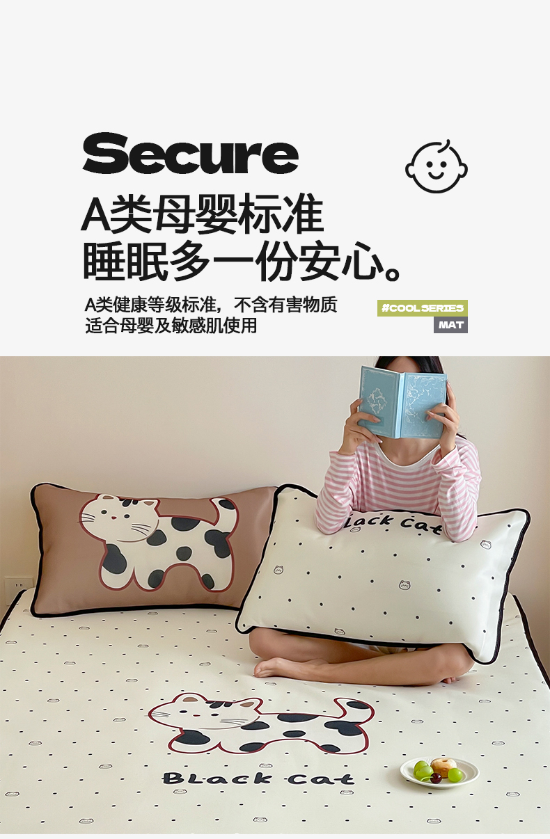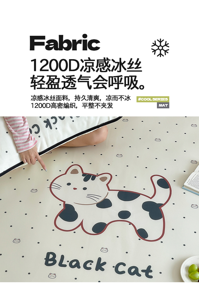 当前位置: 91家纺网 > 商品网购 > 床品套件 > 三件套 > 桃子家居 2025新款A类ins卡通数码印花1200D冰感冰丝凉席系列 冰感席混搭-小花猫