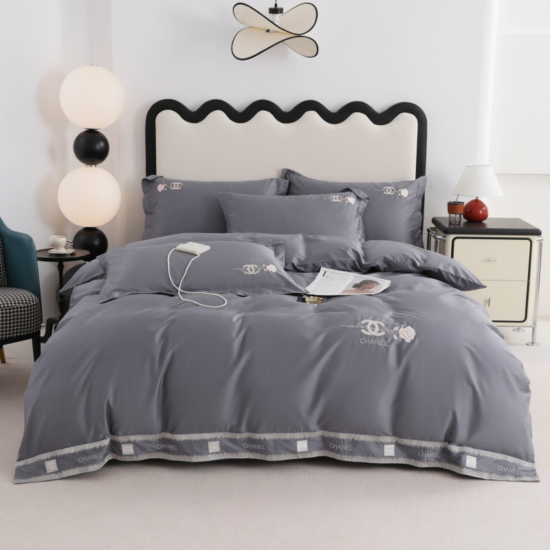 优姿家纺2025新品高端加密全棉100支绣花宽边四件套 奢侈生活-深灰