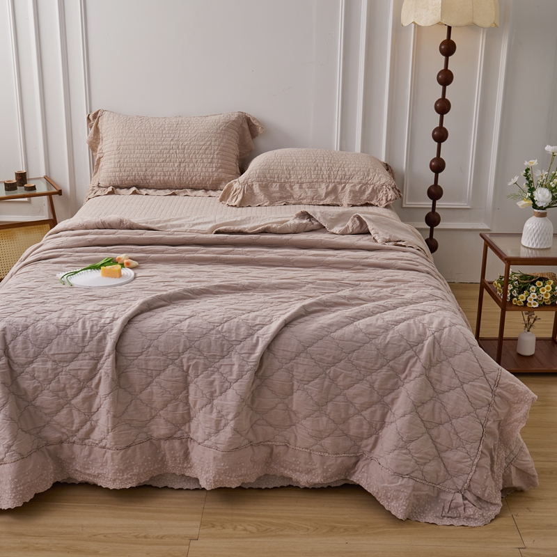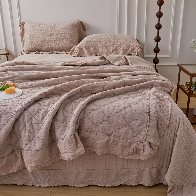 (总)上喜 2025新款全棉提花刺绣款床盖四件套,粉色,卡其色,绿色,香槟色,紫色