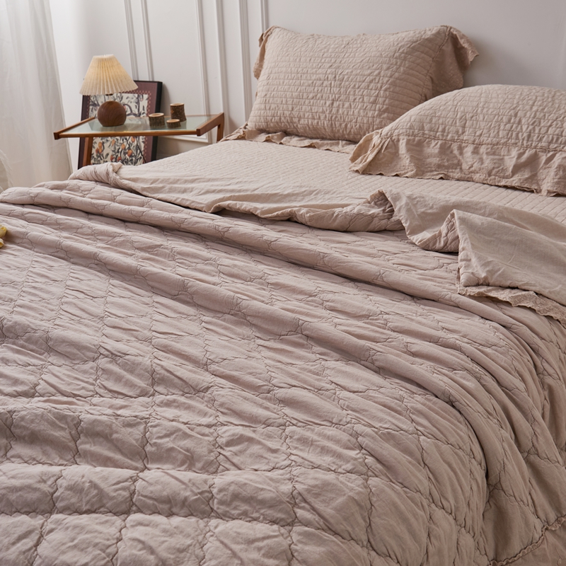 (总)上喜 2025新款简约棉麻床盖夏被夏凉被空调被四件套,粉色,灰色,咖色,麻本色