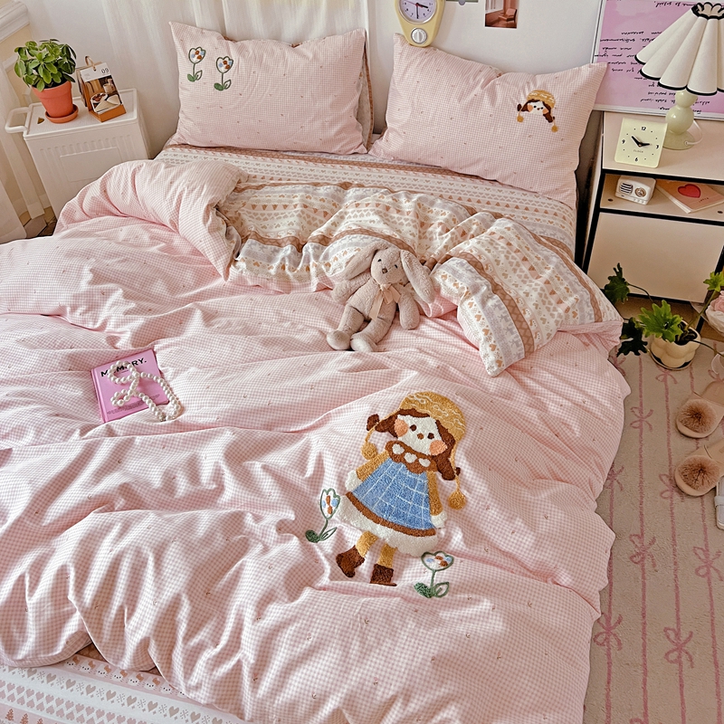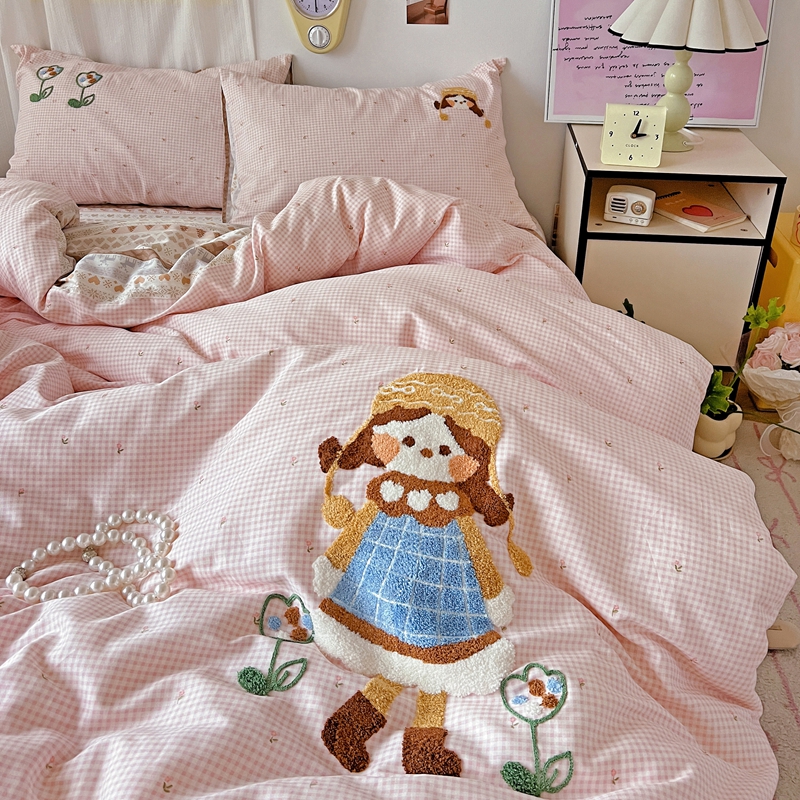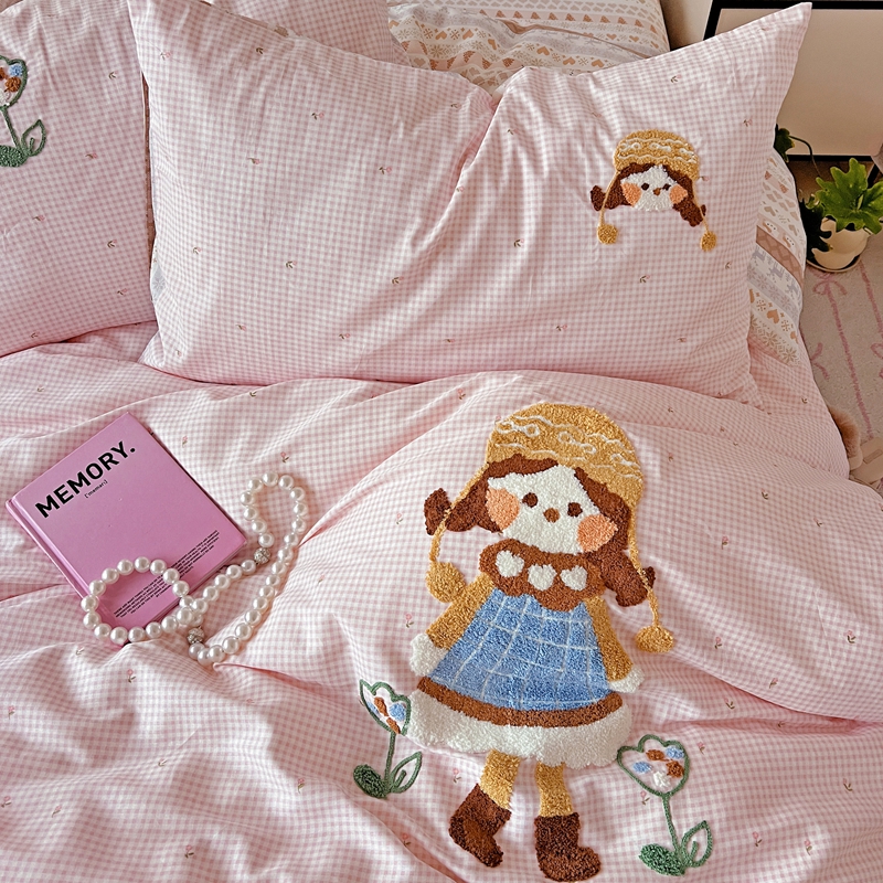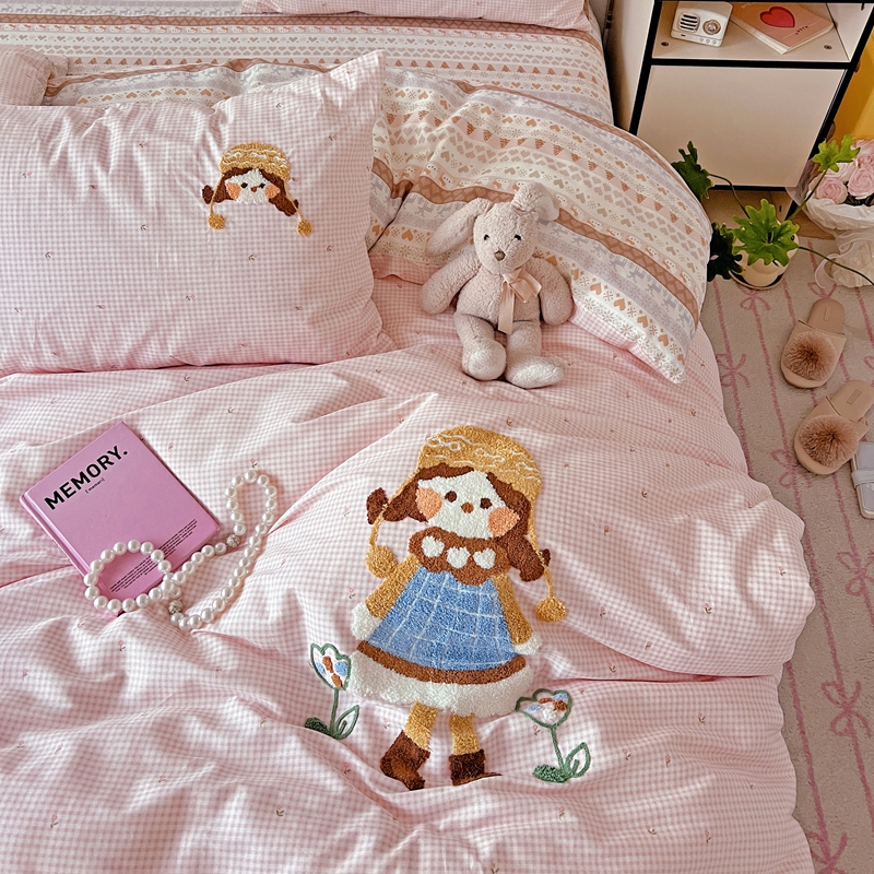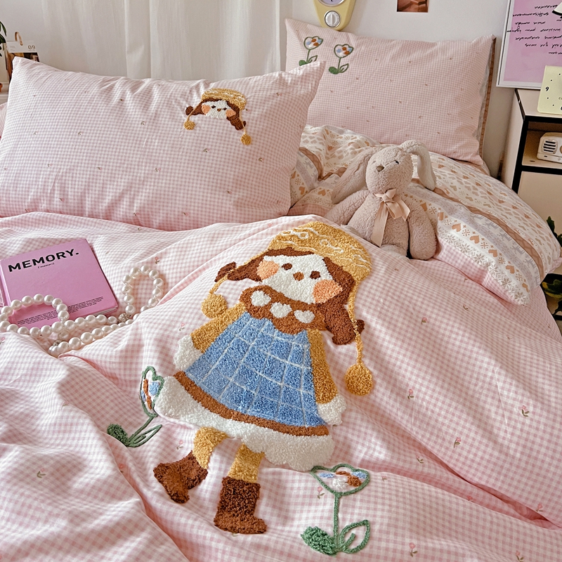 乐童家纺 2025新款13370纯棉毛巾绣呆萌系列四件套第二波 夏日女孩