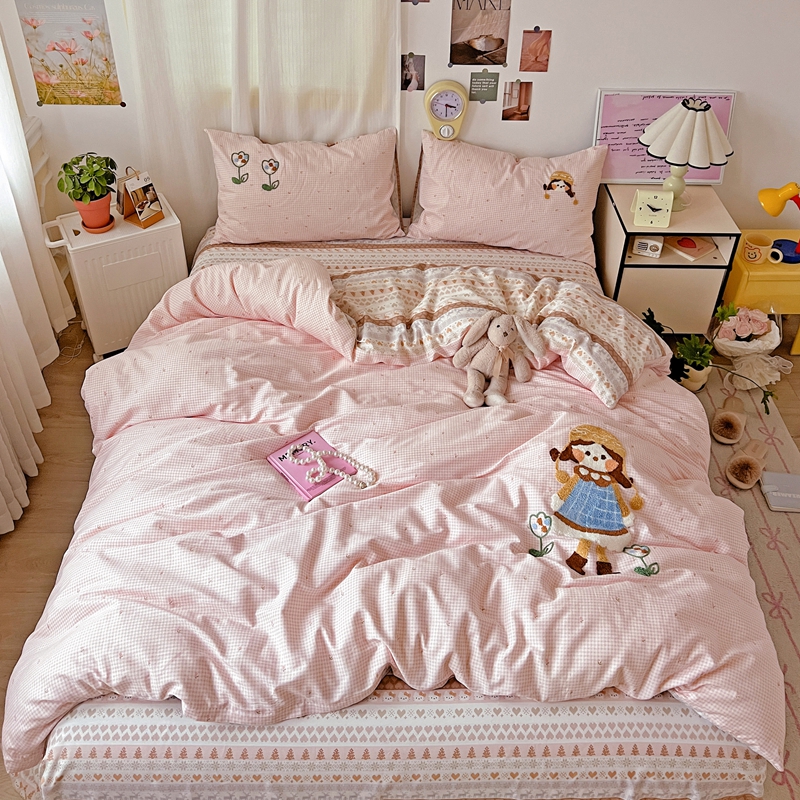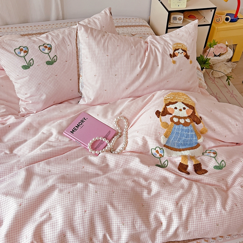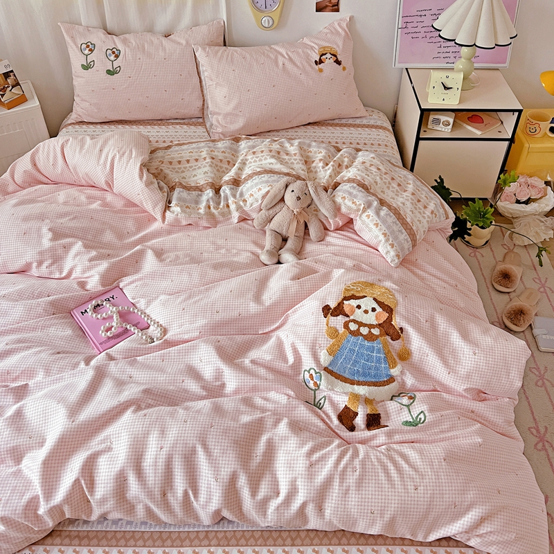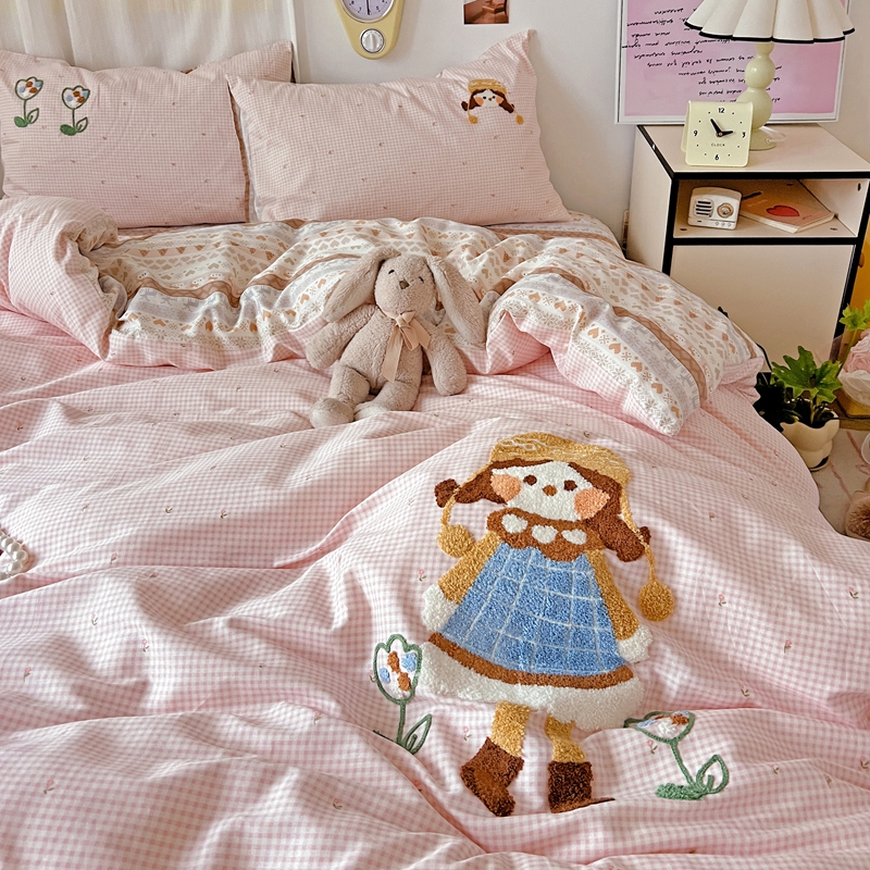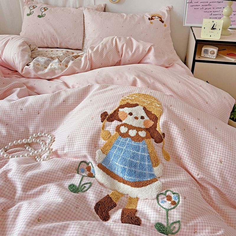 商品名称:乐童家纺 2025新款13370纯棉毛巾绣呆萌系列四件套第二波 夏日女孩