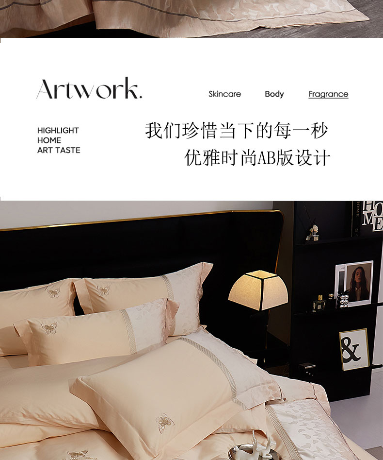 (总)蒂爵 2025新款新疆精梳长绒棉刺绣四件套-东方美学,东方美学-花未眠粉,东方美学-暮云归香槟,东方美学-清梦瑶绿,东方美学-月下歌紫,东方美学-云窗夜灰