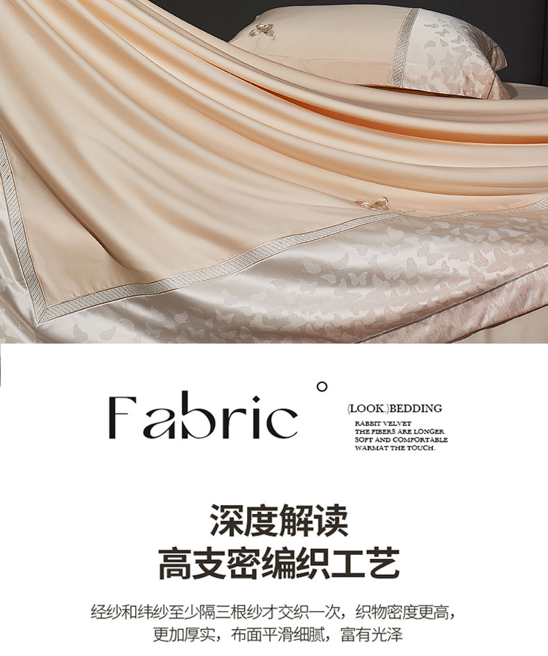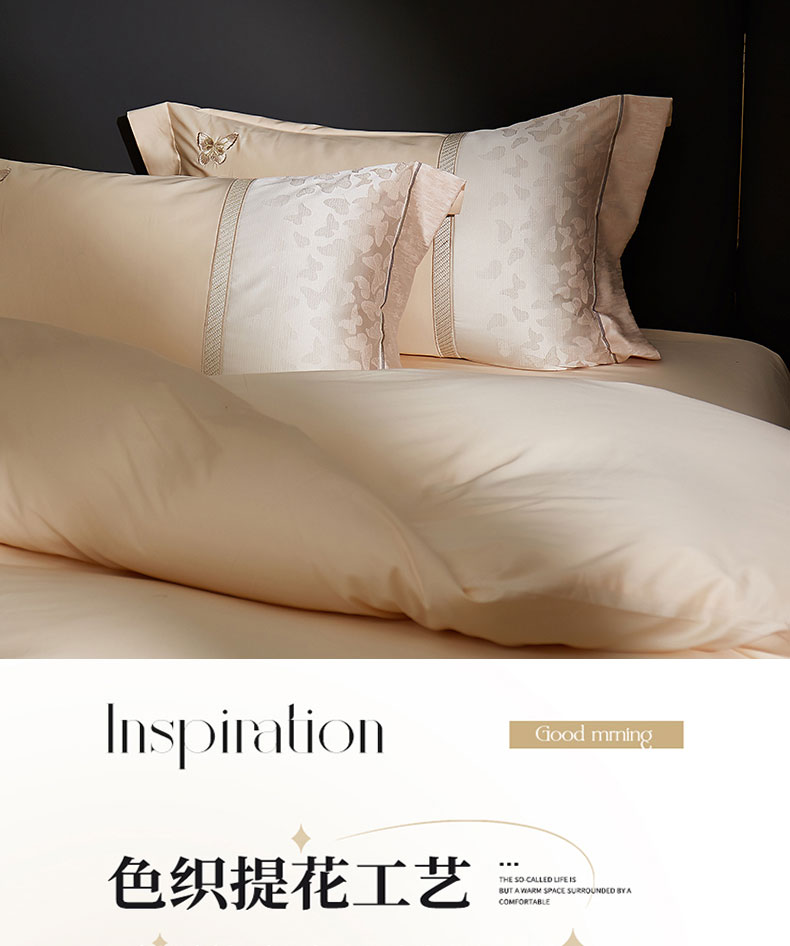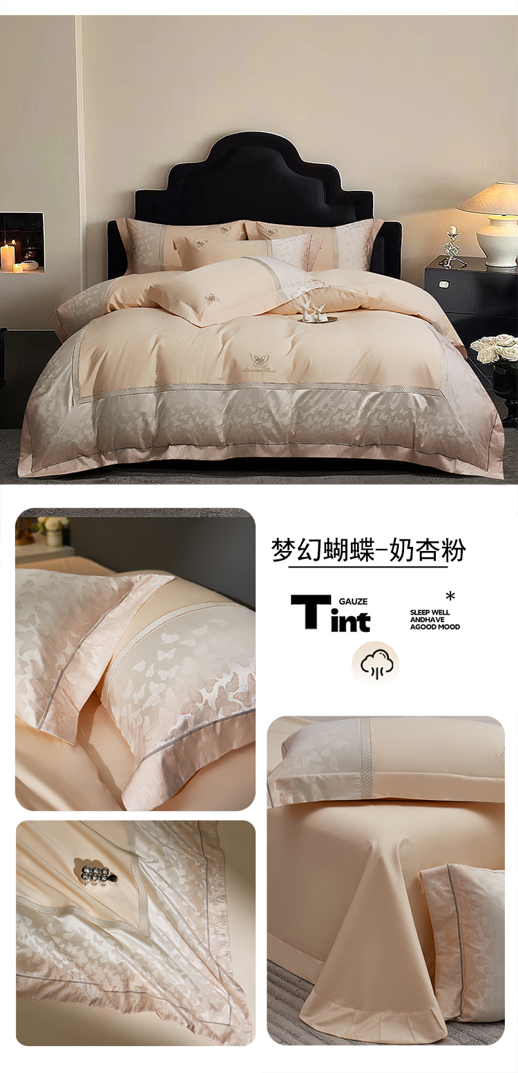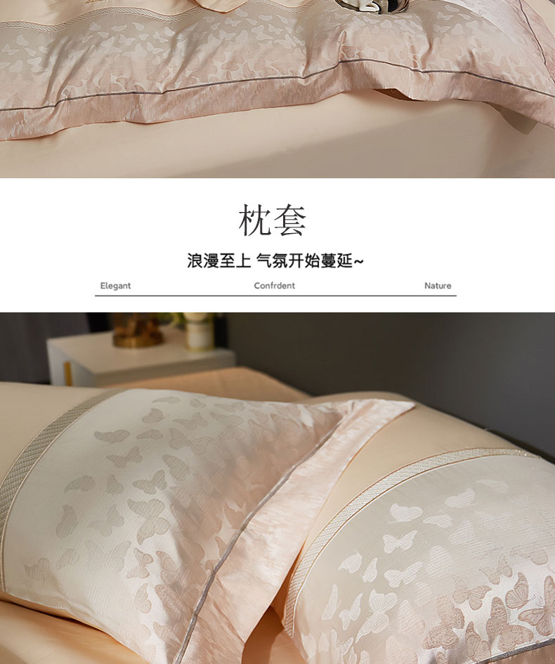 商品名称:蒂爵 2025新款居家长绒棉提花四件套梦幻蝴蝶系列 奶杏粉