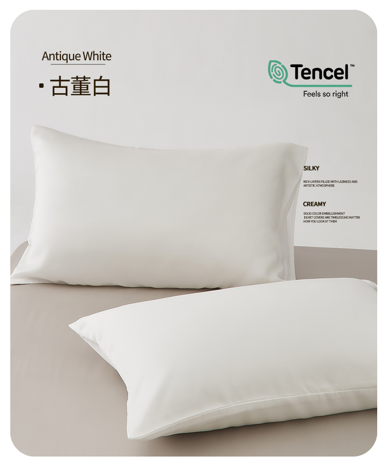 商品名称:禧缘家纺(原梦想家) 2025新款60天丝简约舒适纯色单品系列-单枕套 古董白