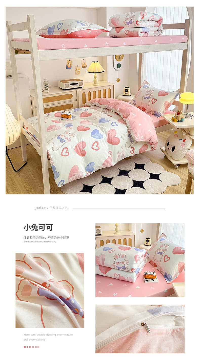 卡普二店 2024新款爆款加厚卡通小清新全棉纯棉学生宿舍三件套床笠隔天可拿 小兔可可