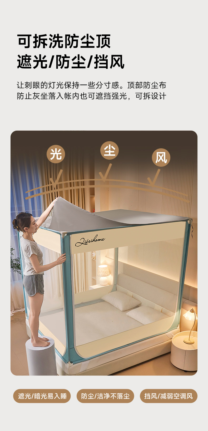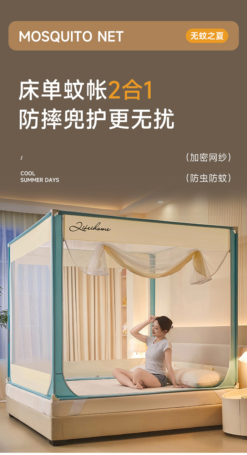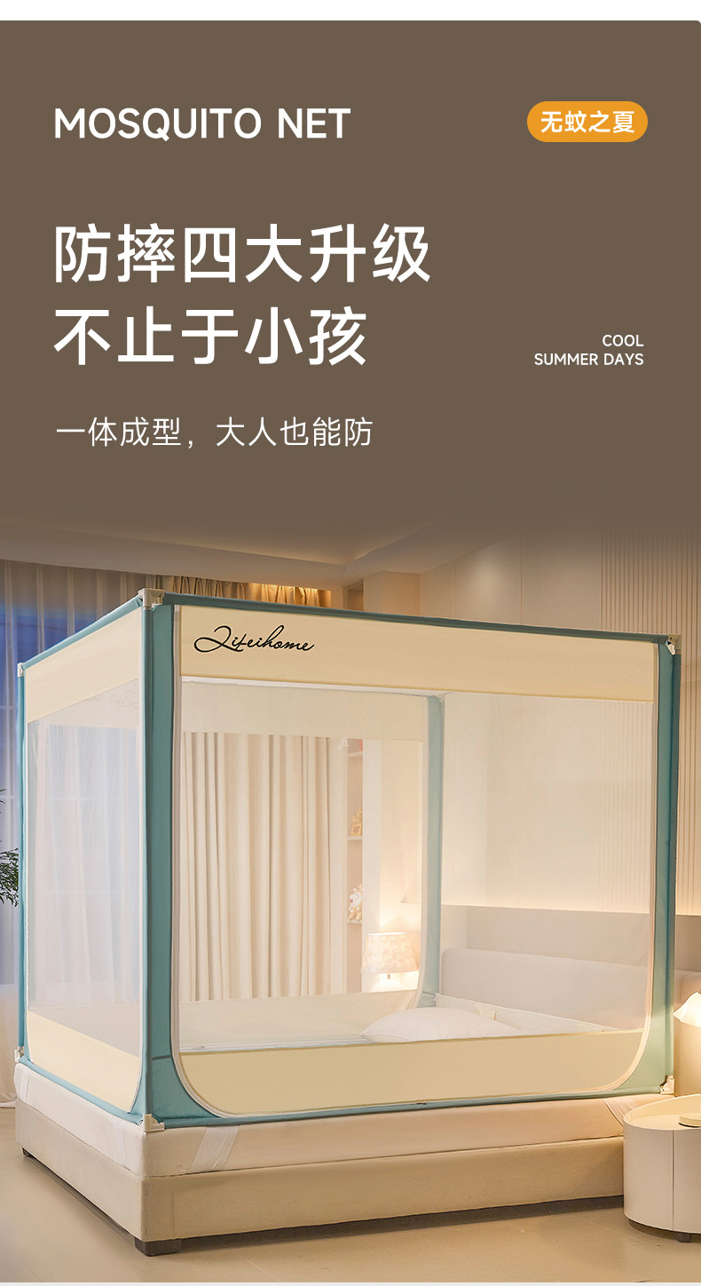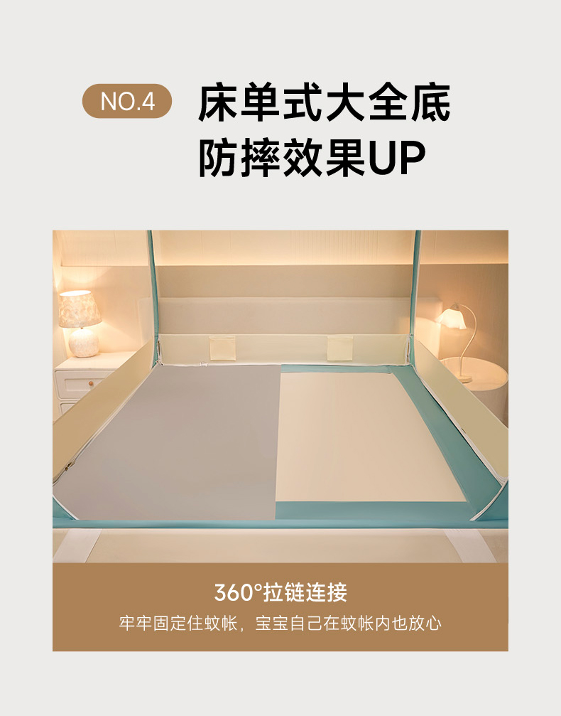 当前位置: 91家纺网 > 商品网购 > 床上用品 > 蚊帐 > 坐床式蚊帐 > 星际优品 2025新款拉链式坐床防摔蚊帐-拼色款系列 浅绿奶油黄