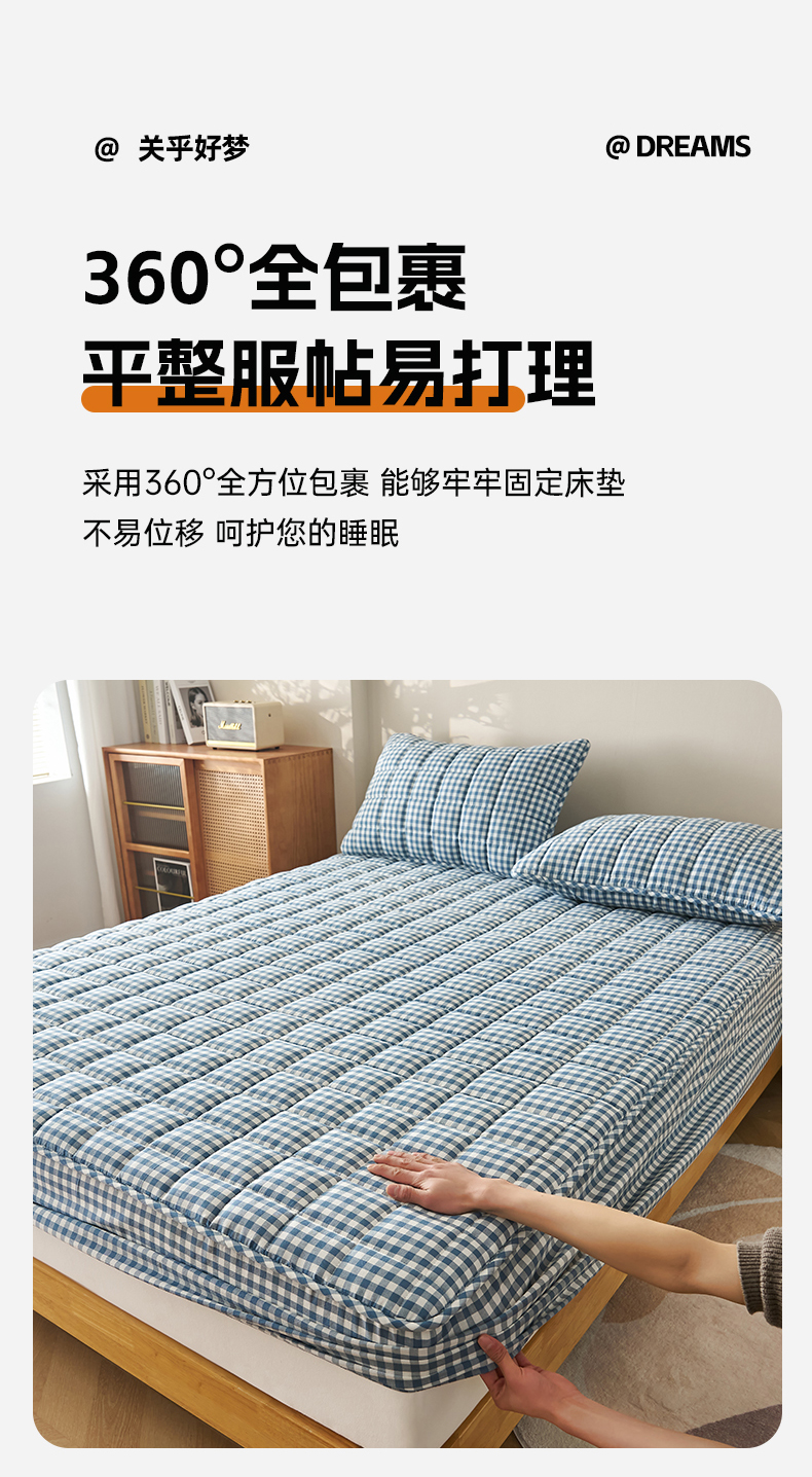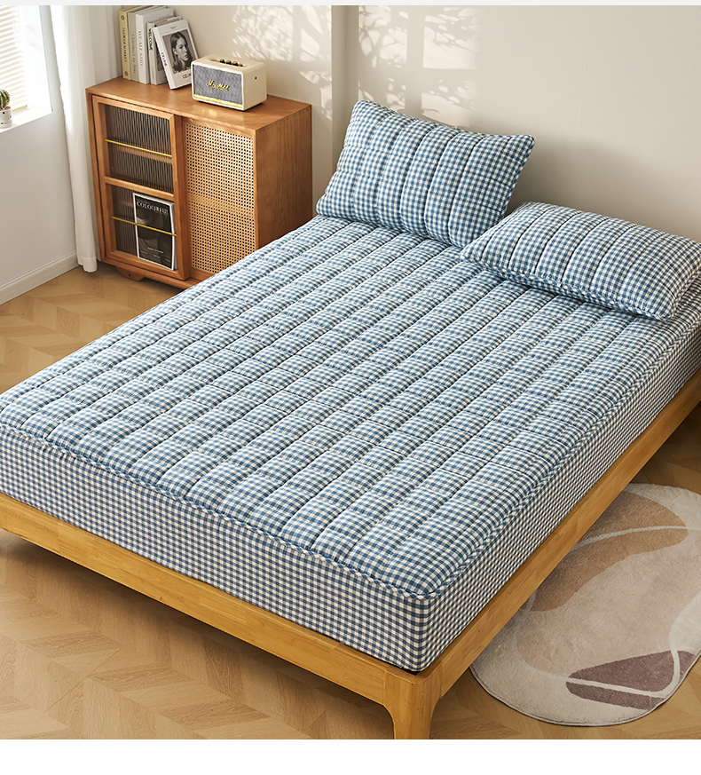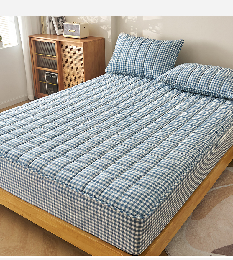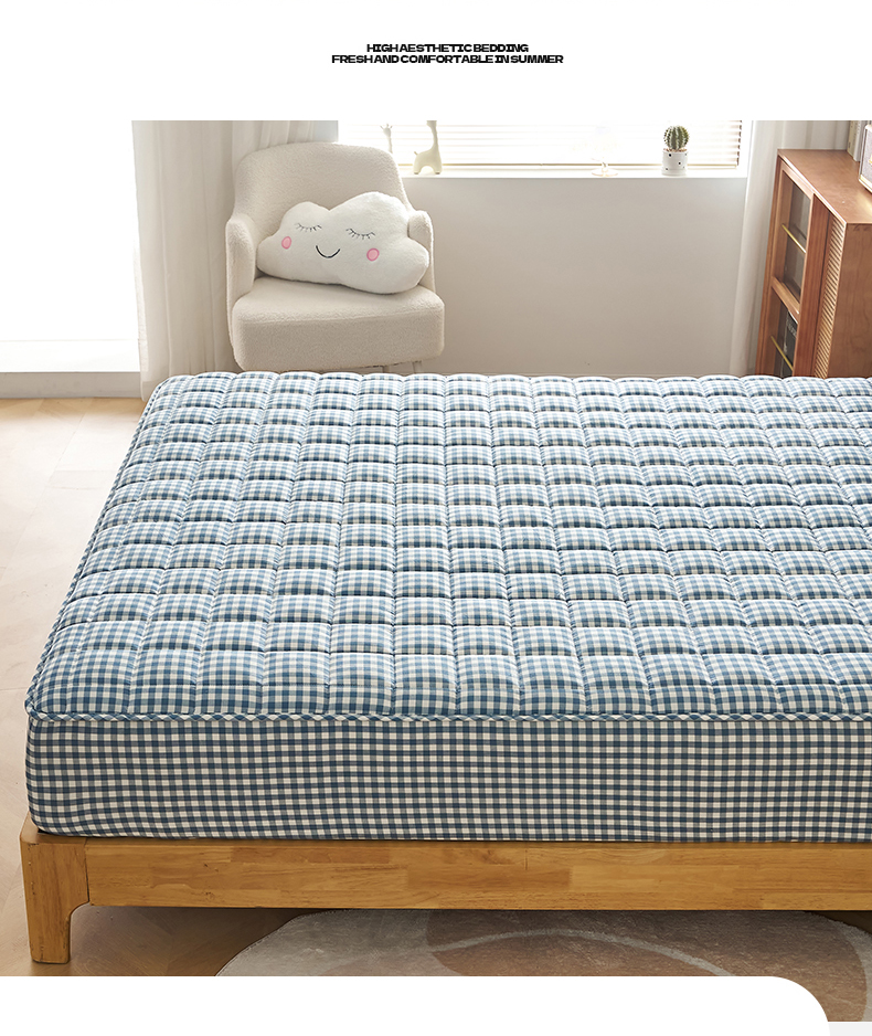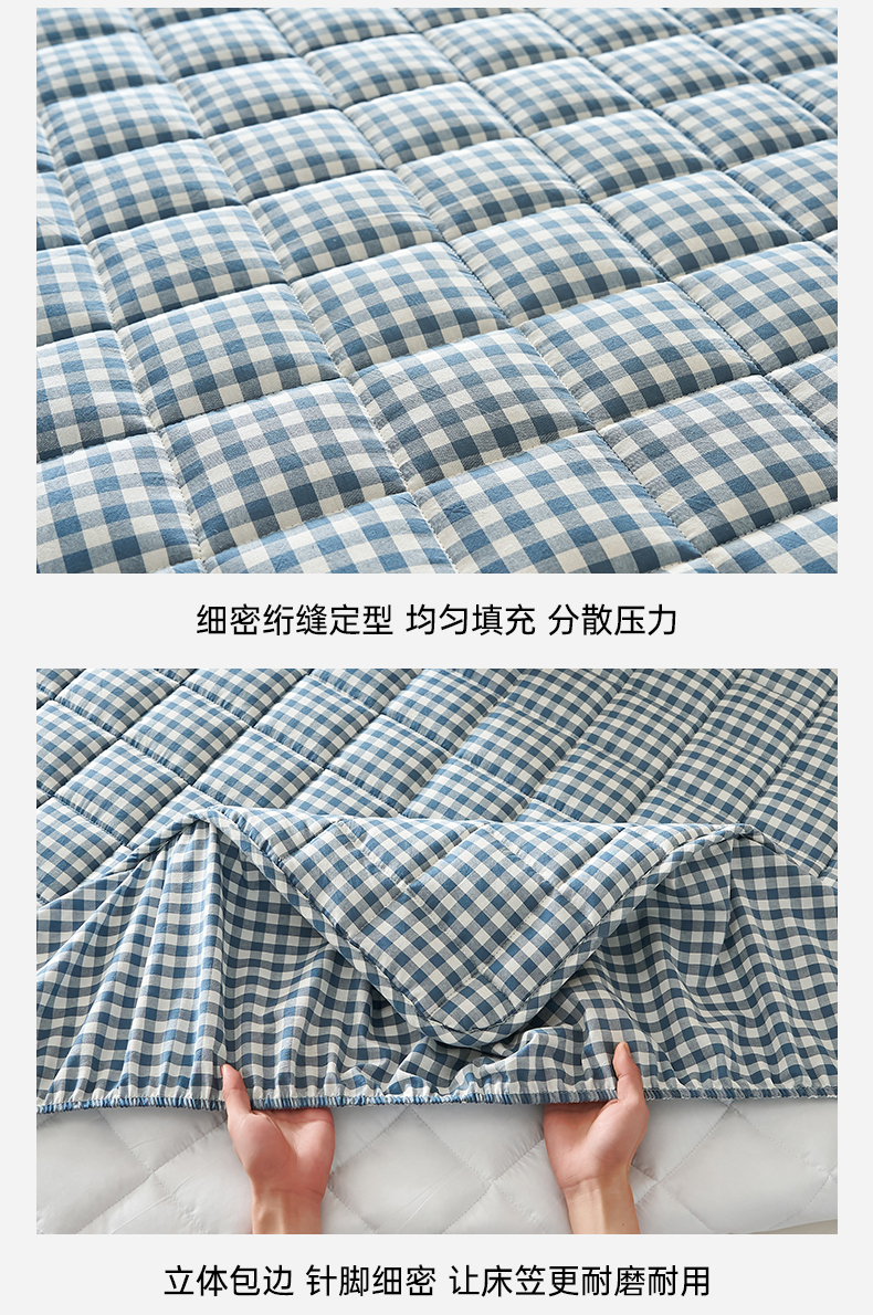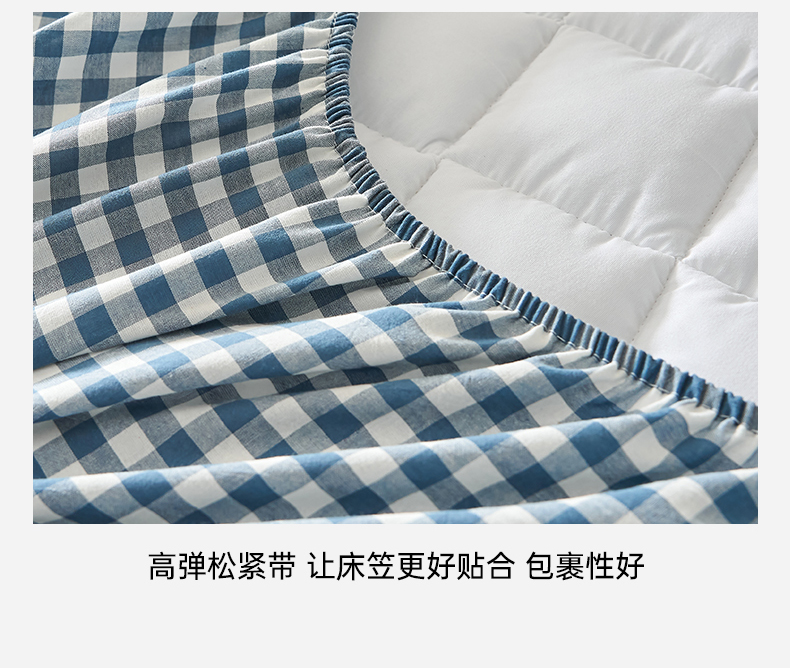 商品名称:锦丝钰床垫 2025春夏新款全棉色织水洗棉床笠 蓝小格