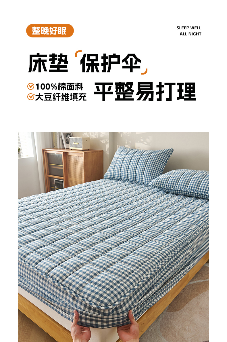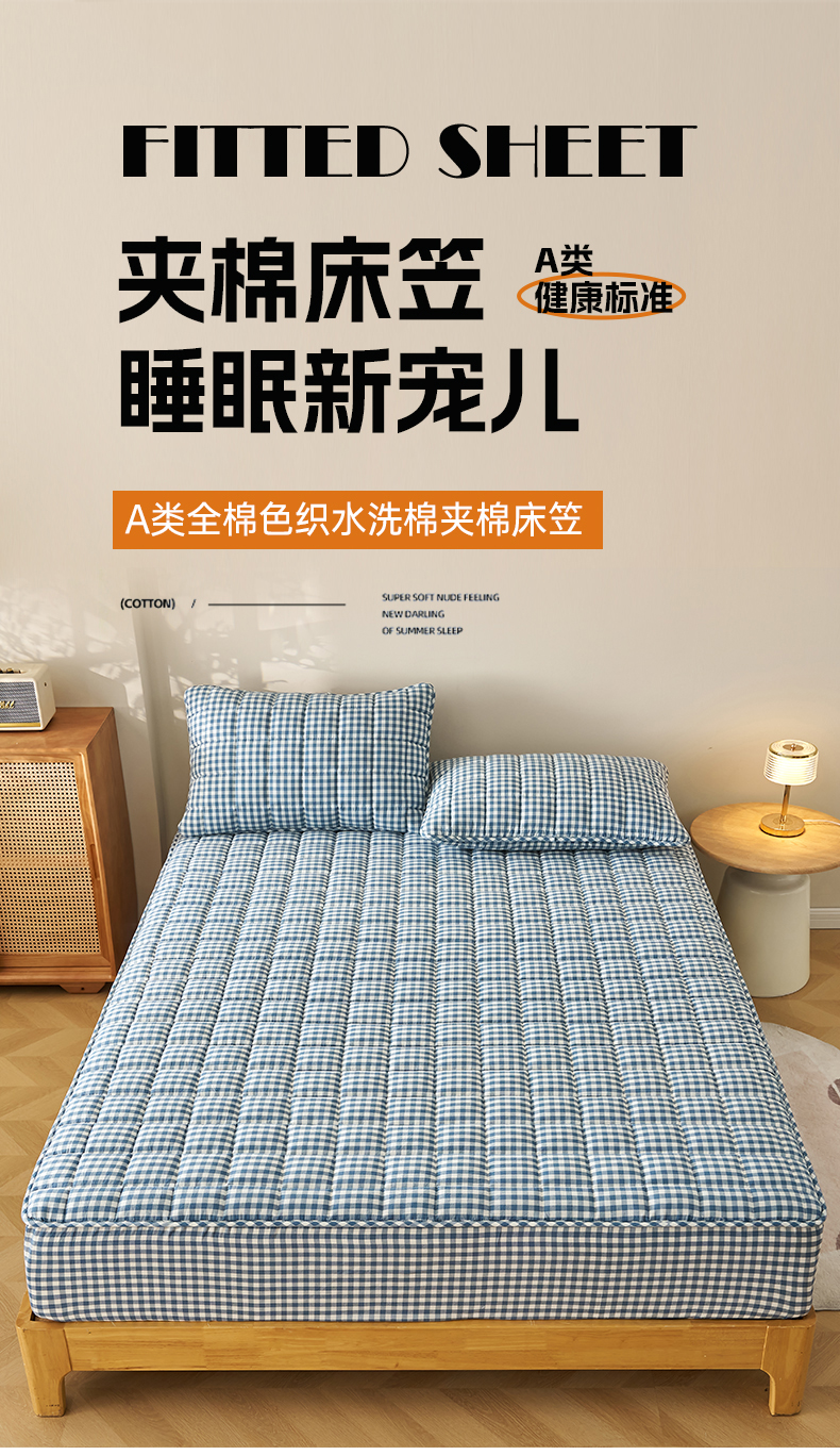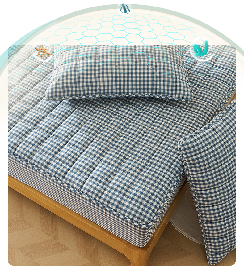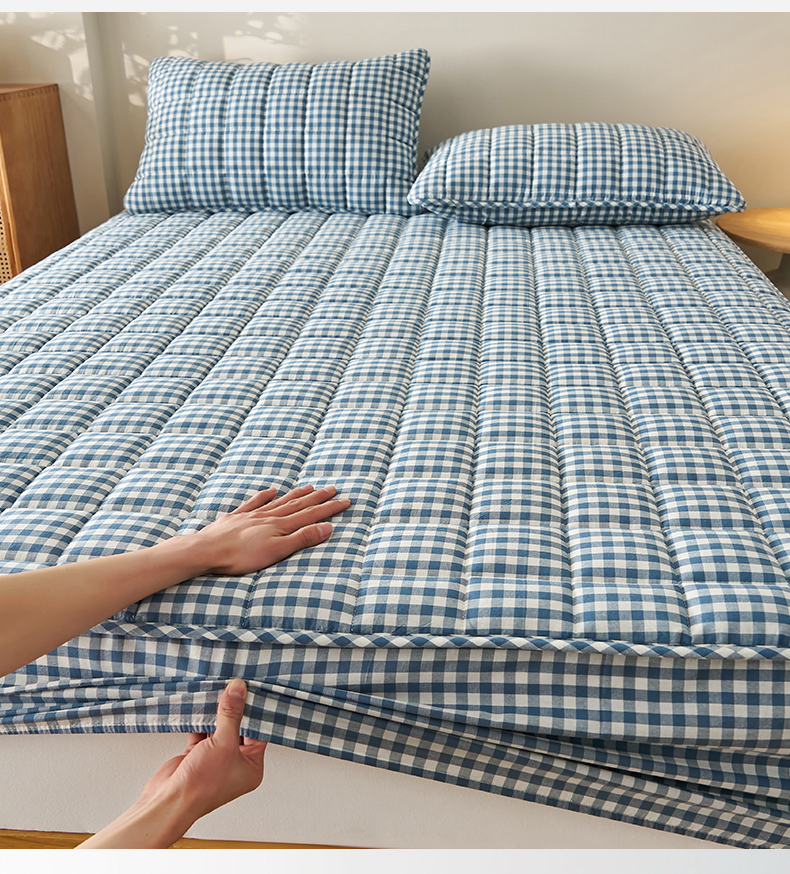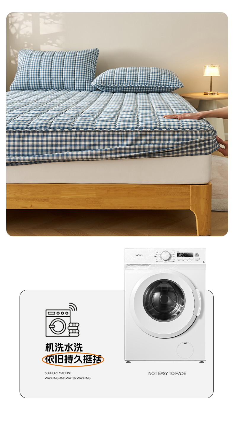 商品名称:锦丝钰床垫 2025春夏新款全棉色织水洗棉床笠 蓝小格