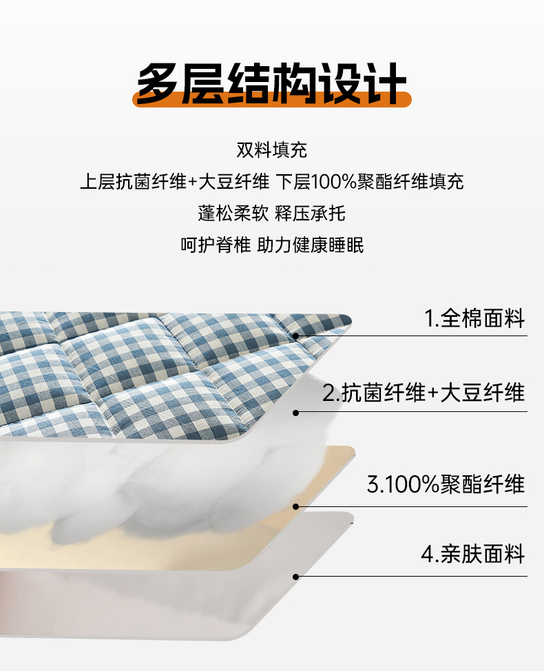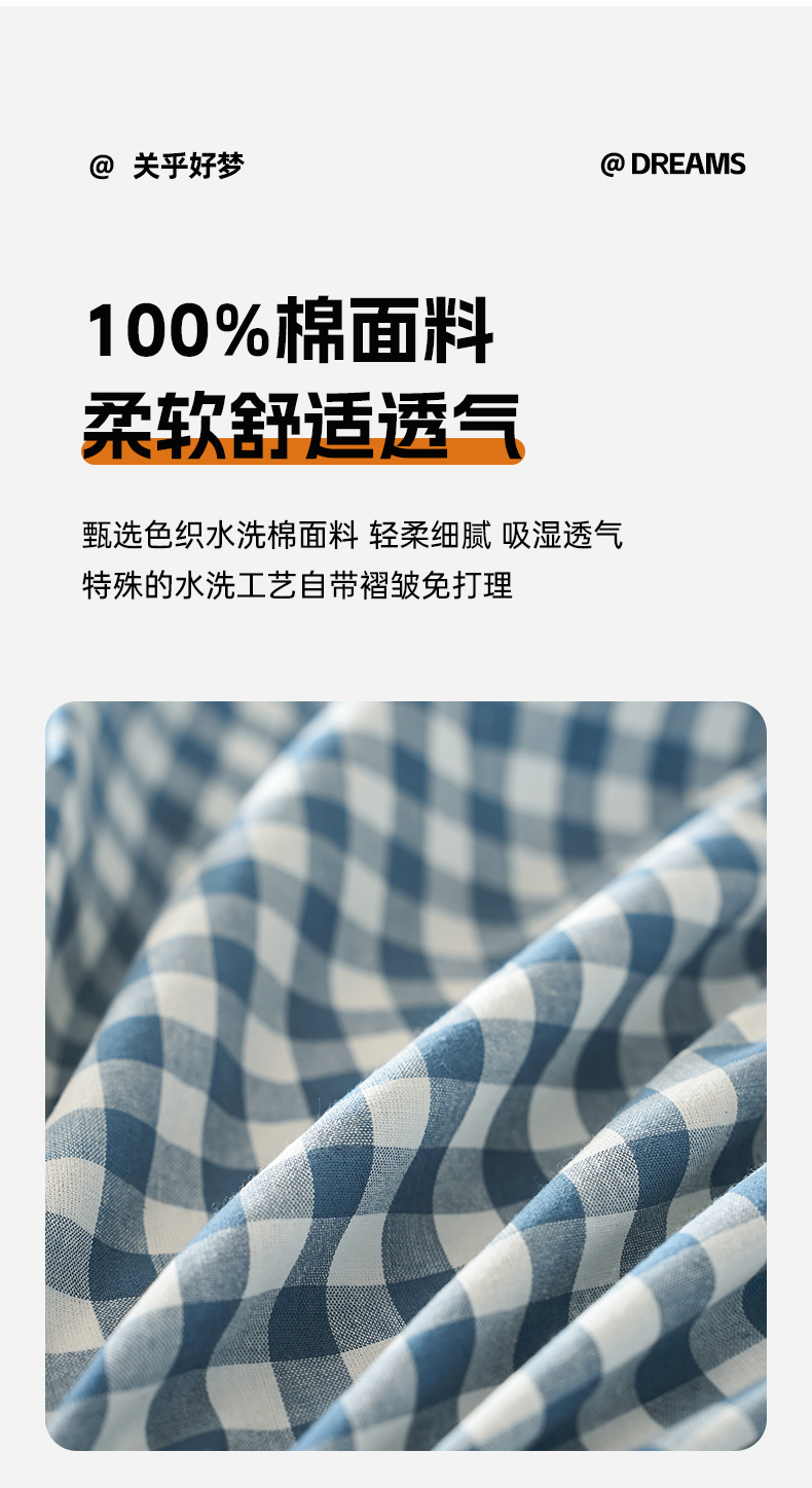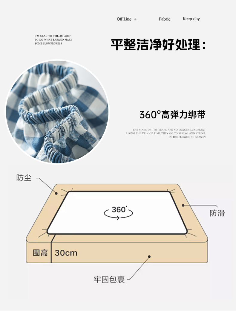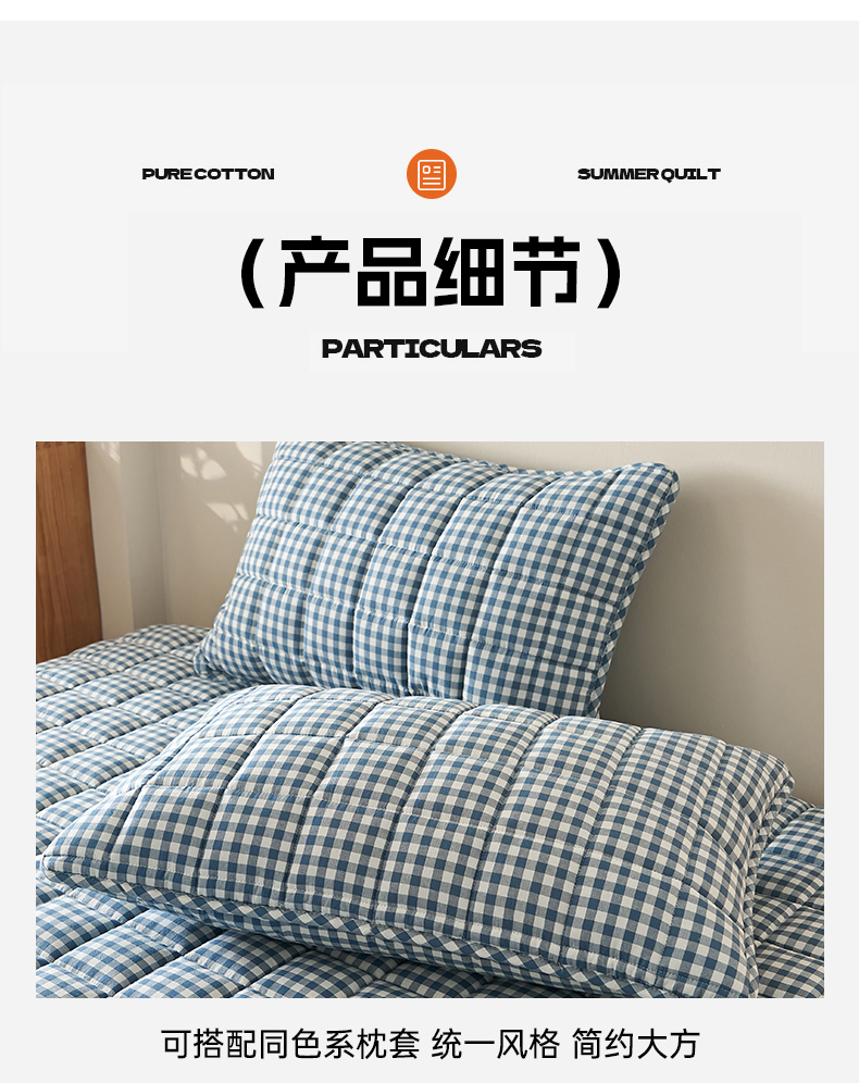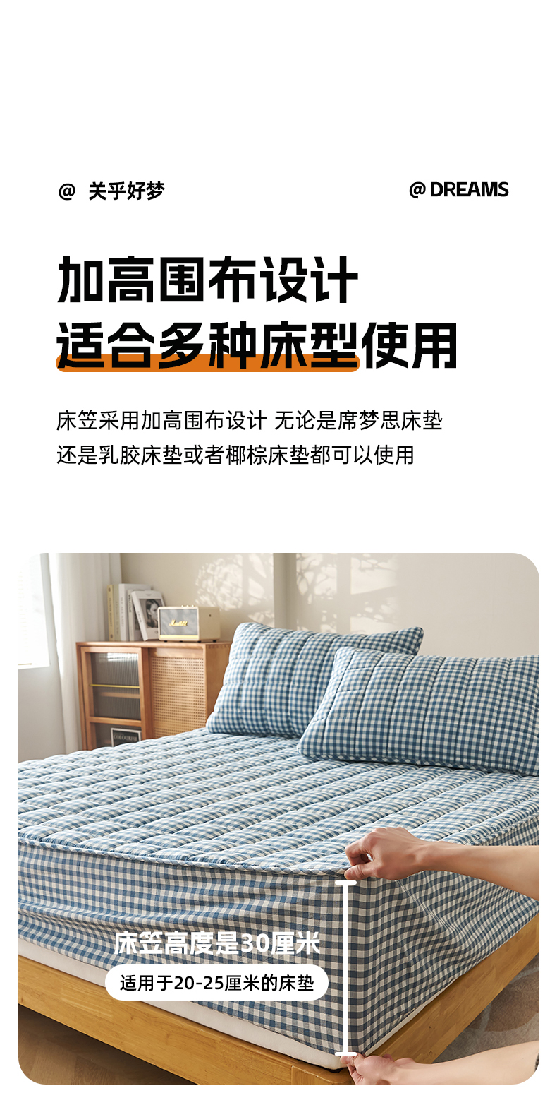 商品名称:锦丝钰床垫 2025春夏新款全棉色织水洗棉床笠 蓝小格