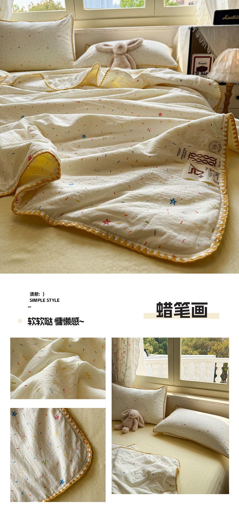 当前位置: 91家纺网 > 商品网购 > 床品套件 > 四件套 > 夏被四件套 > 星巴k家纺 2025新款春夏云感双层纱A类母婴级三角针夏被贝壳边夏凉被贝壳绣【可提供买家秀】 贝壳绣-兔子欢喜