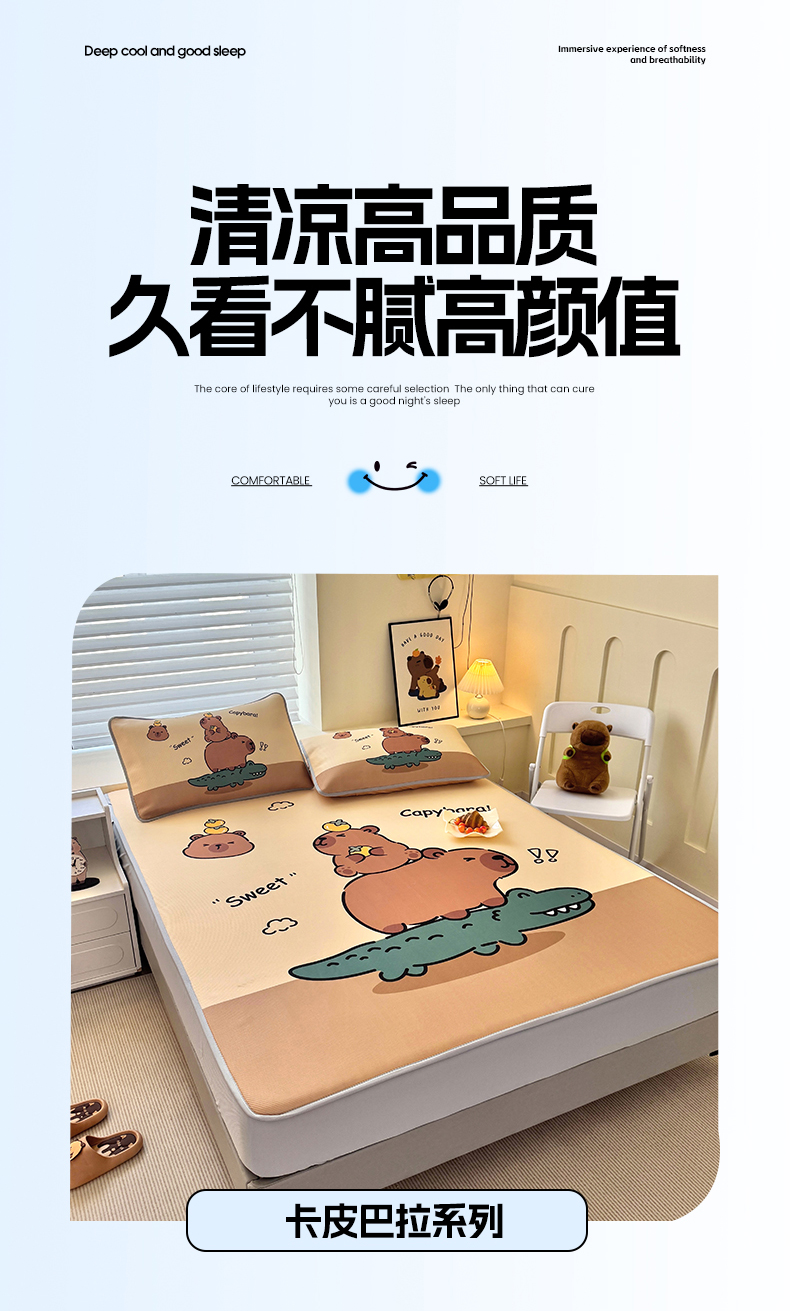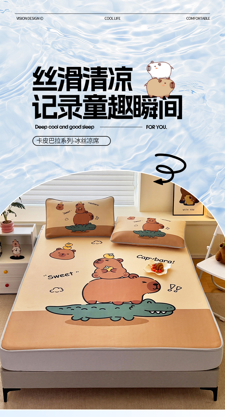 • 91家纺网 家纺一手货源 找家纺 蘭菲家纺 2025新款凉感丝卡皮巴拉凉席 征服拉