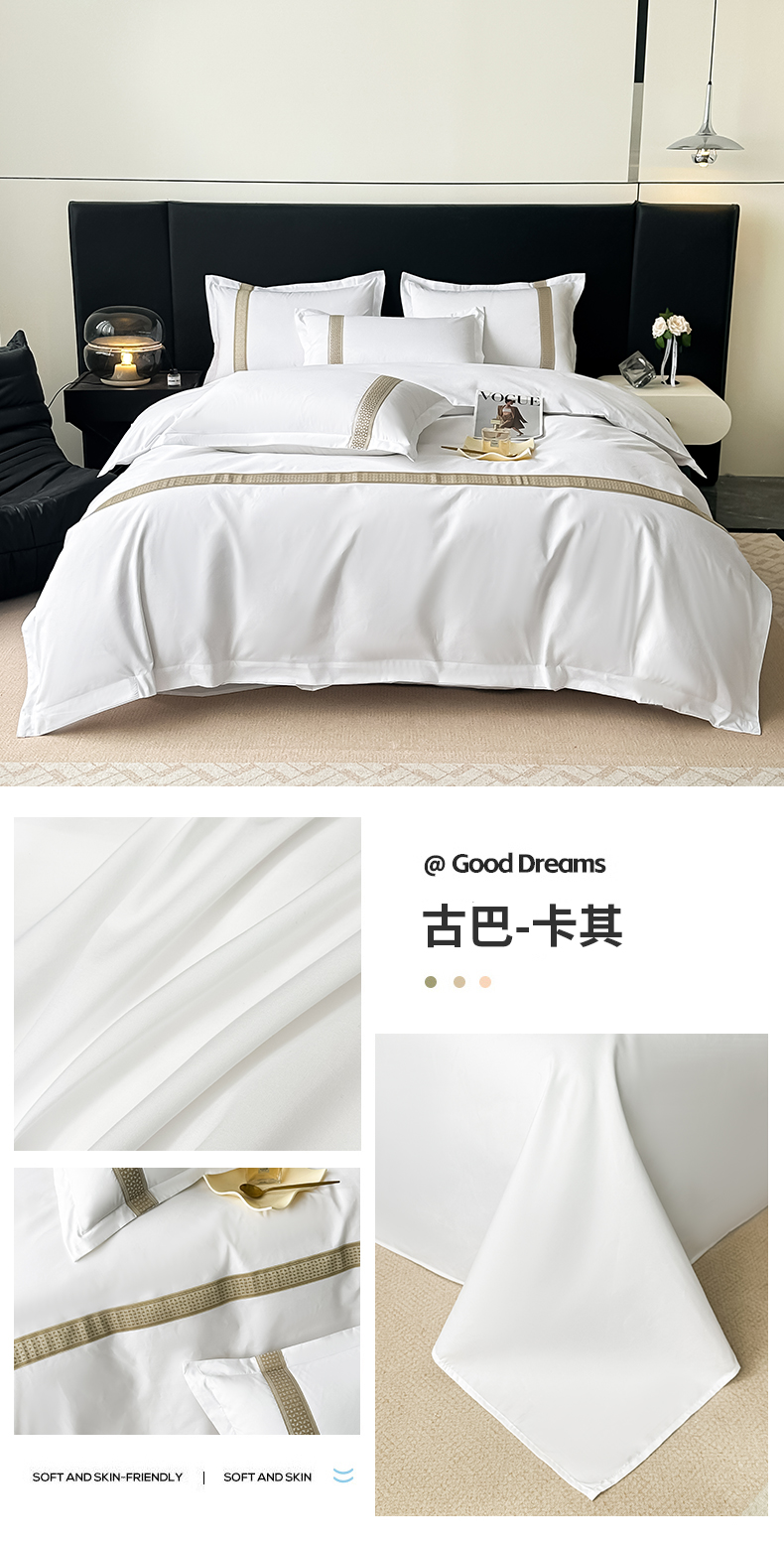 当前位置: 91家纺网 > 商品网购 > 床品套件 > 四件套 > 普通磨毛四件套 > 梦庭帛美 2025新款宾馆刺绣四件套 古巴-卡其