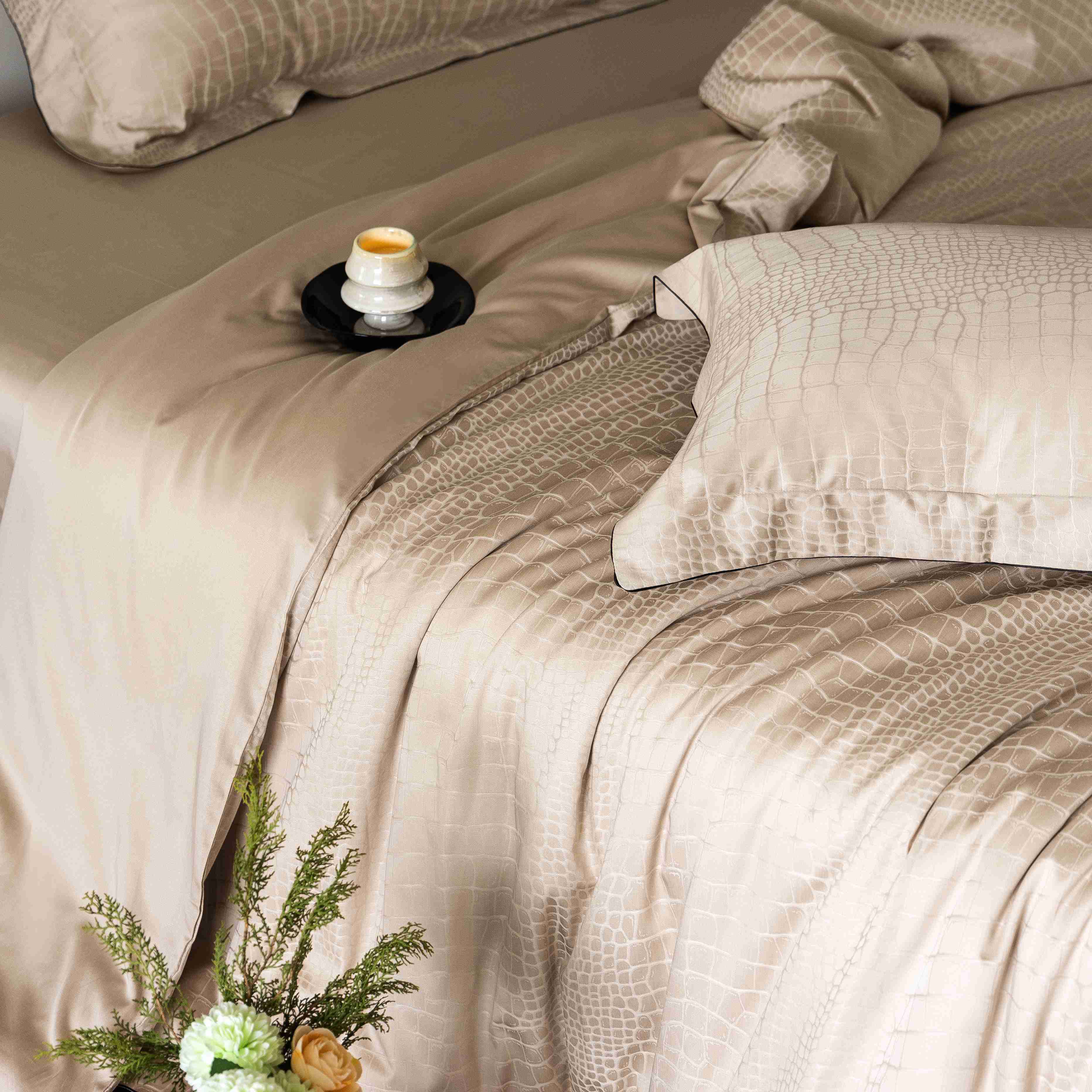 涞澳家纺 2025新款60支天丝棉提花四件套 波曼-驼