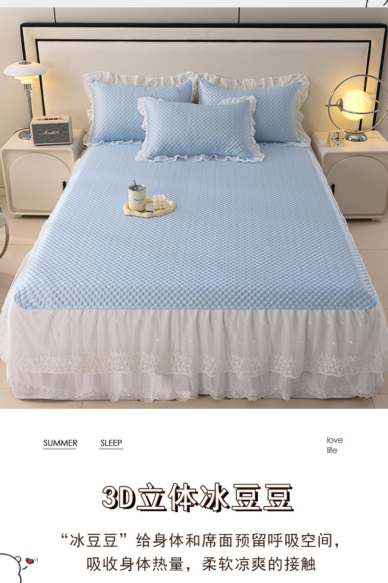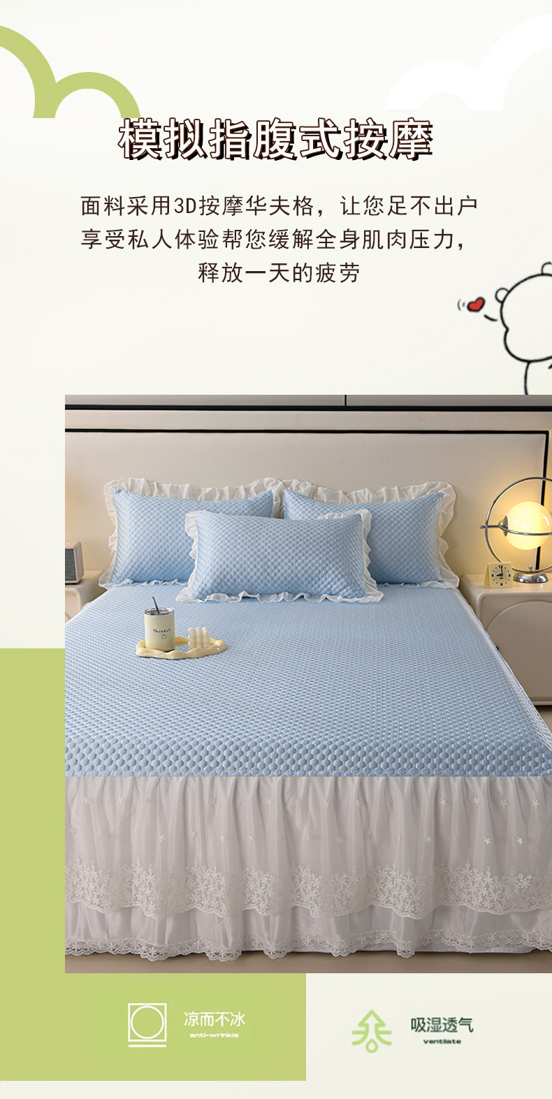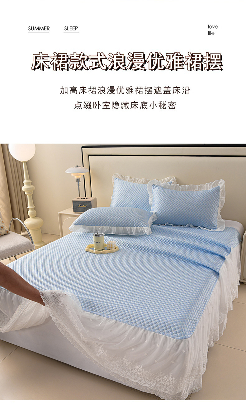 喜梦缘家纺 2025新款豆豆席床裙款 浅蓝色