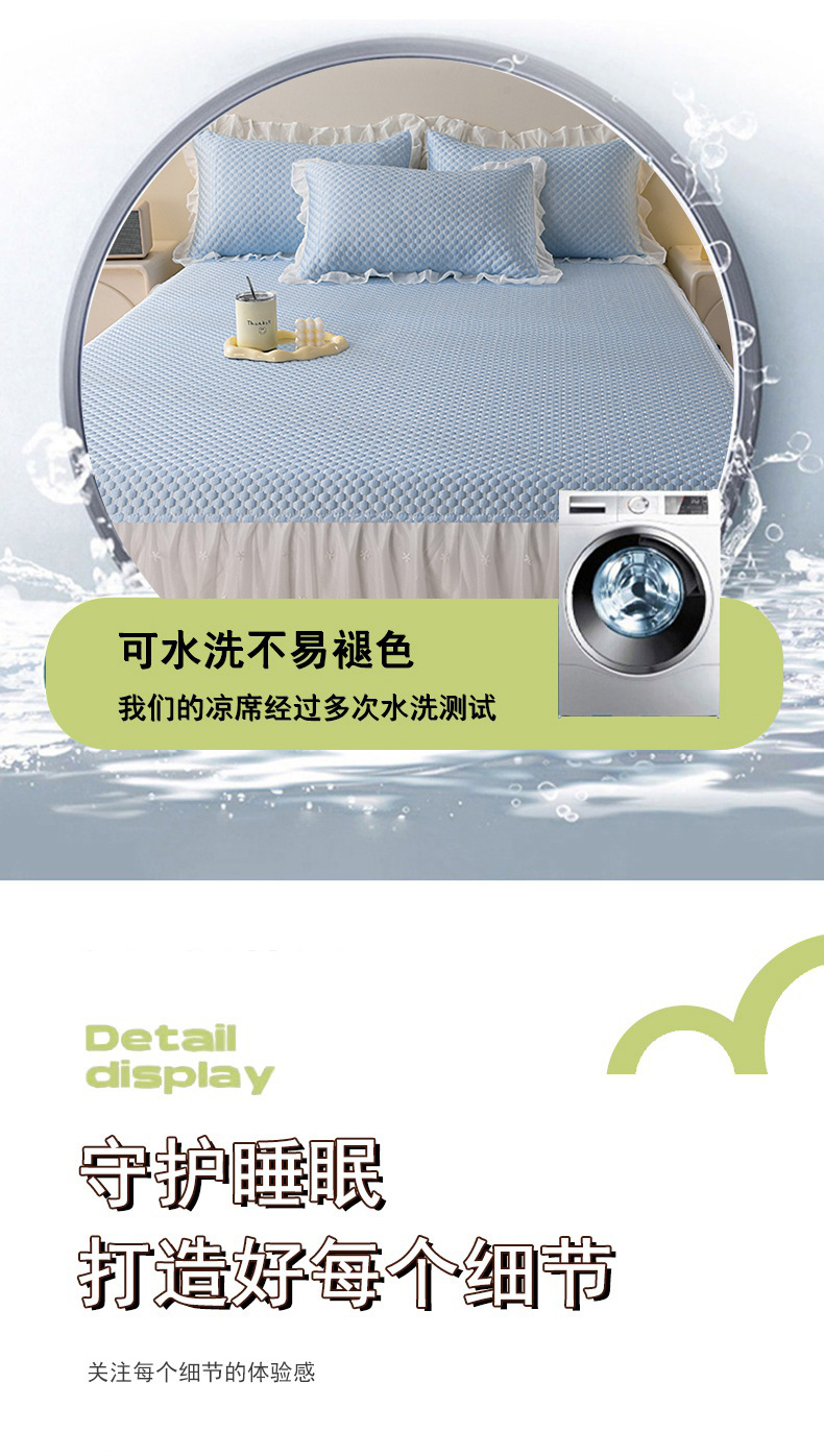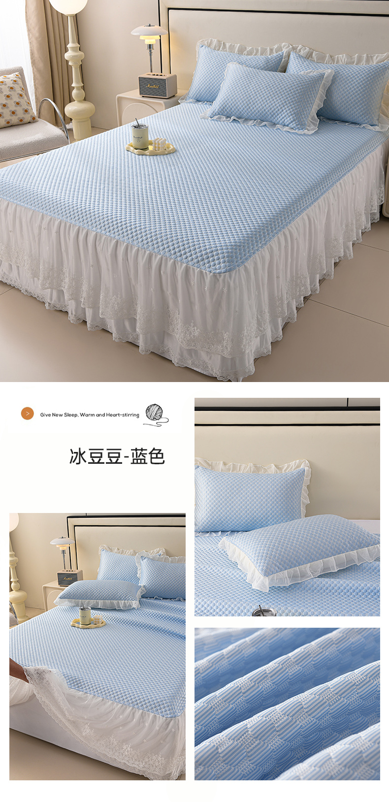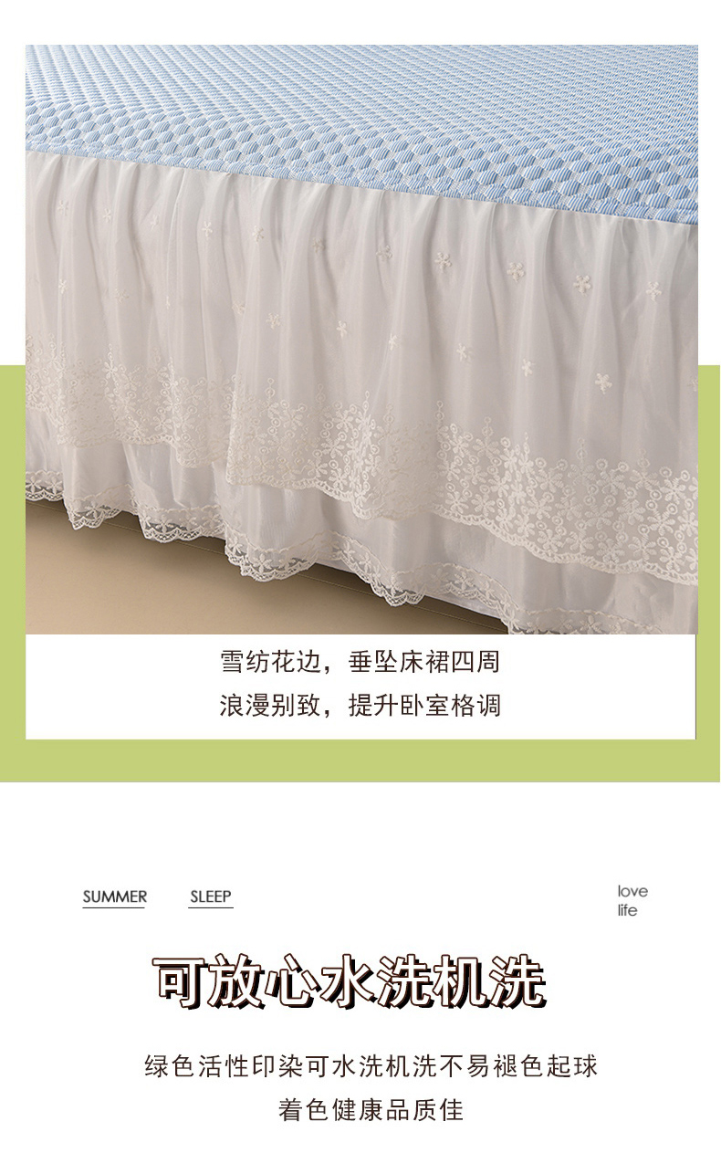 喜梦缘家纺 2025新款豆豆席床裙款 浅蓝色