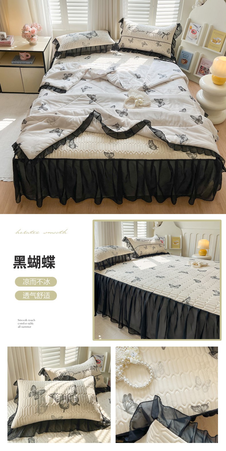商品名称:沐慕 2025新款床裙款凉感丝凉席三件套 床裙-玫瑰粉喵