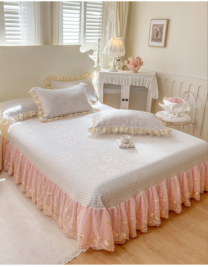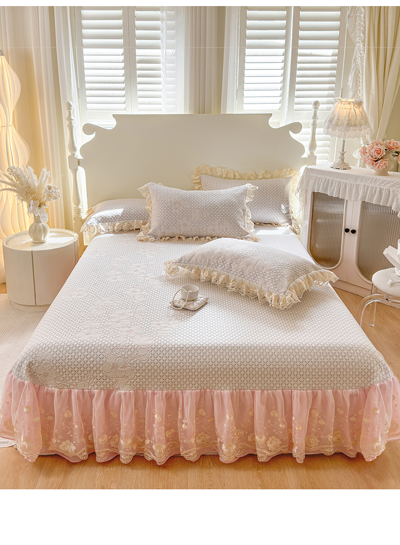 (总)网红馆(ck家纺) 2025新款色织提花牛奶绒床裙四件套-洛丽塔系列,洛丽塔-豆沙,洛丽塔-蓝色,洛丽塔-米色