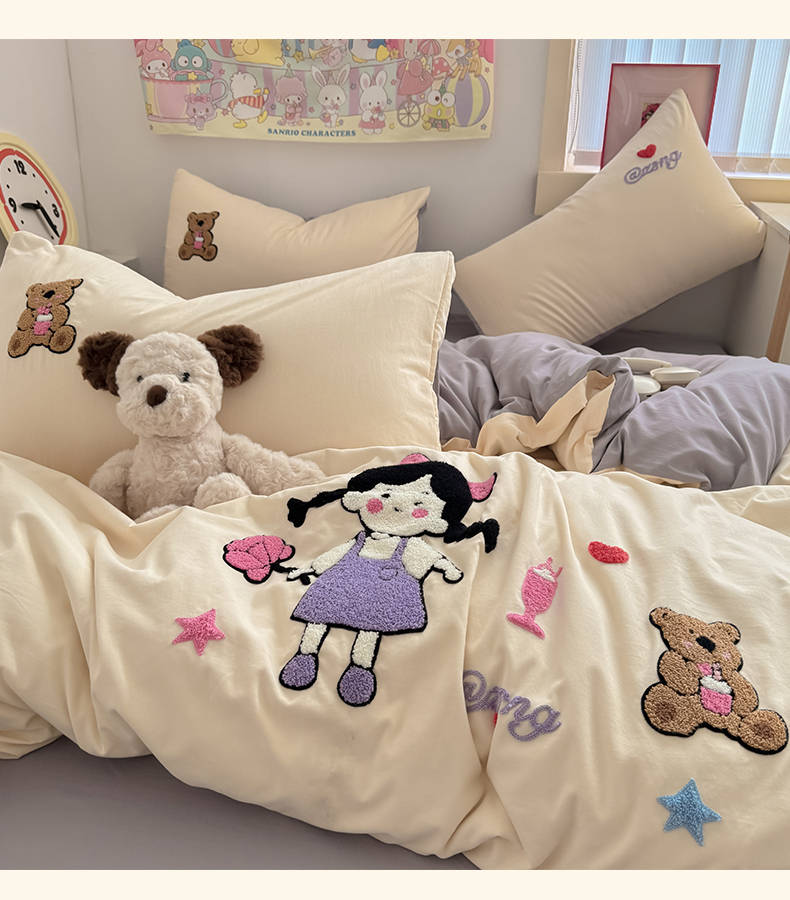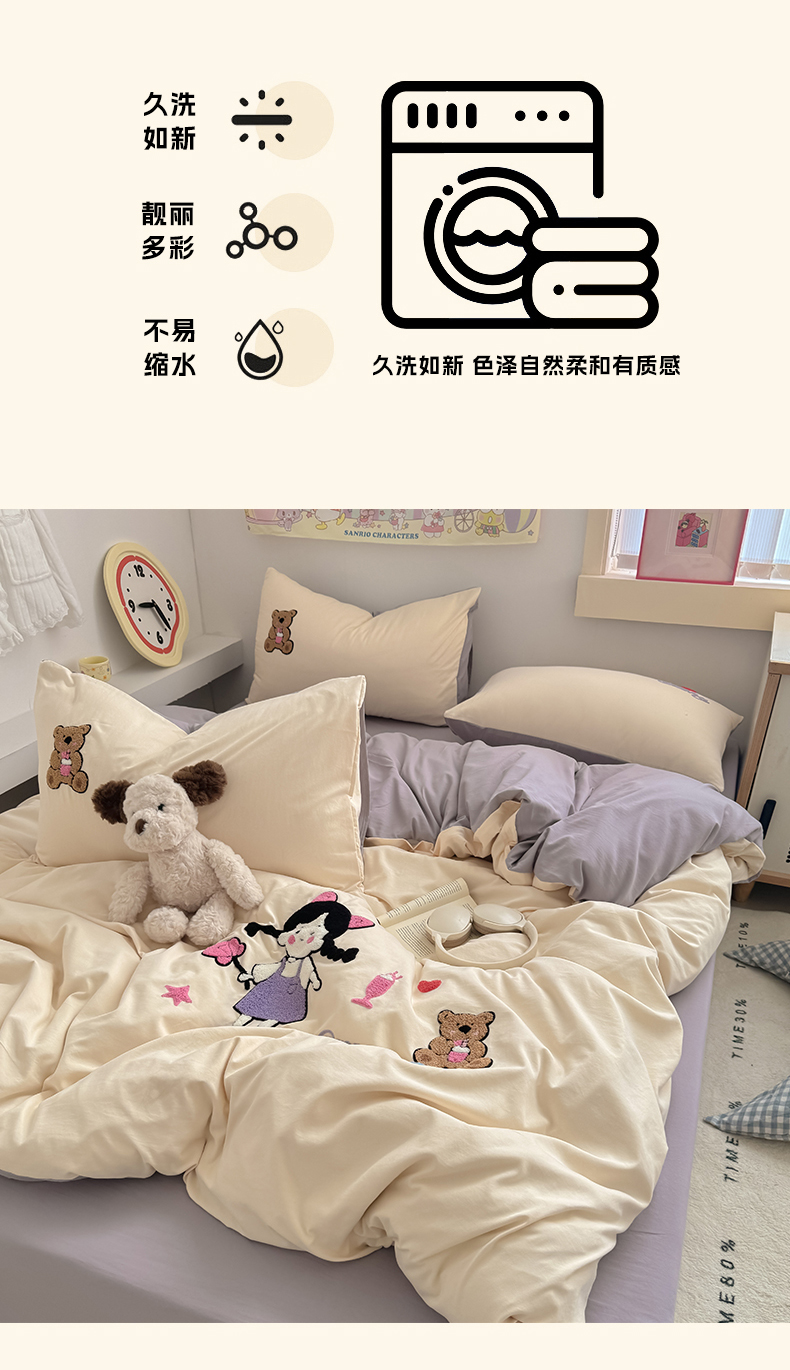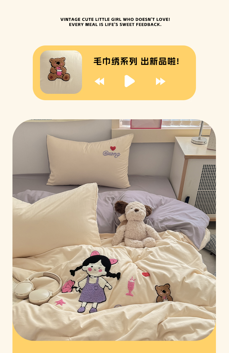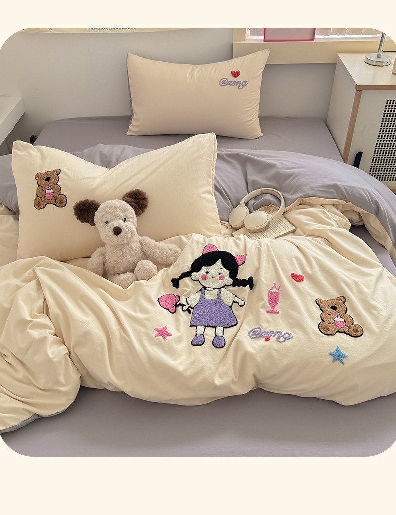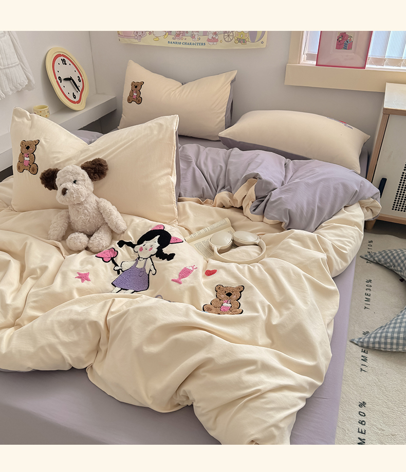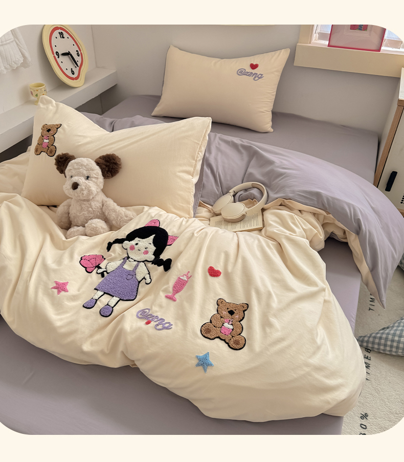 当前位置: 91家纺网 > 商品网购 > 床品套件 > 四件套 > 水洗棉四件套 > 沃朴家居 2025春夏新款亲肤水洗棉毛巾绣四件套 花朵女孩