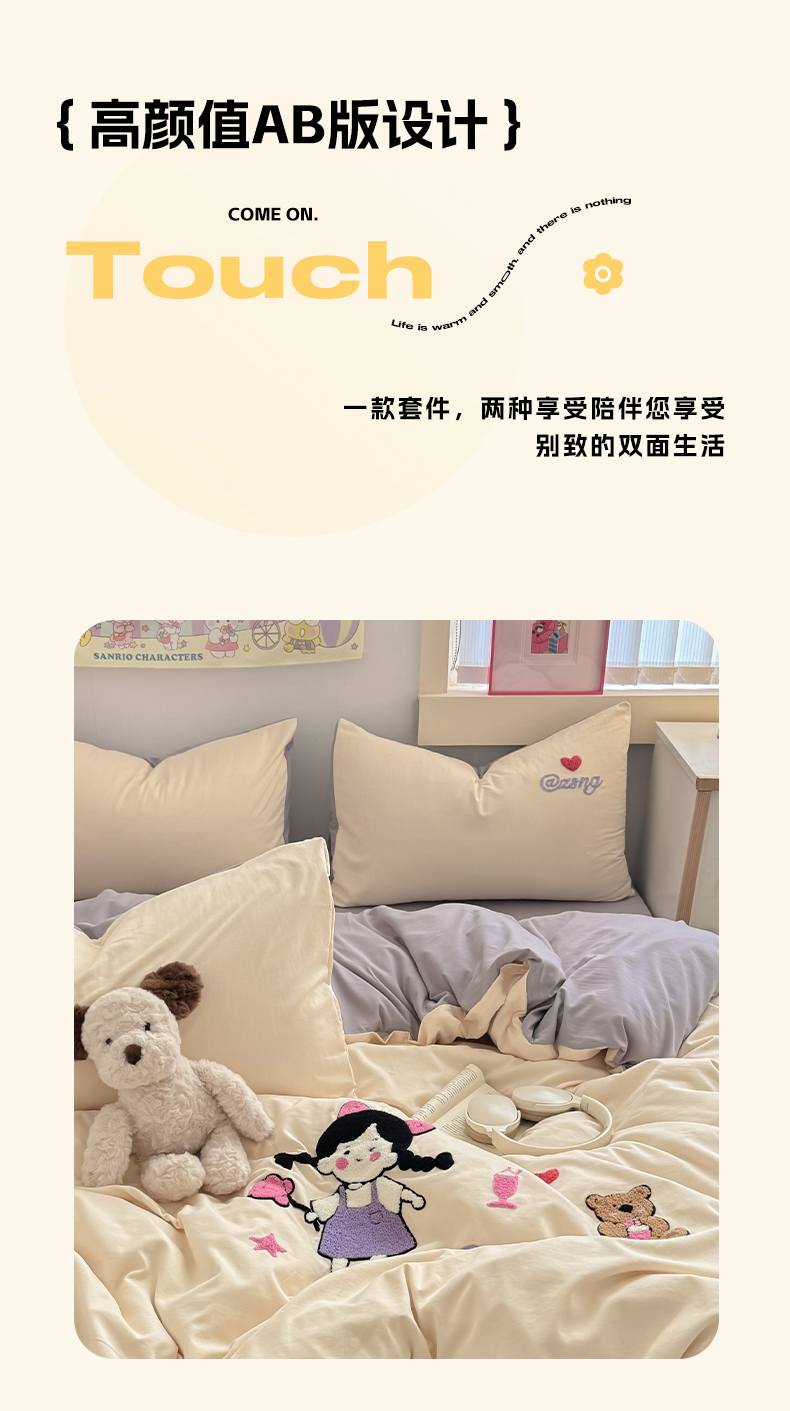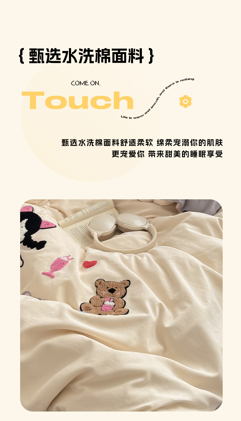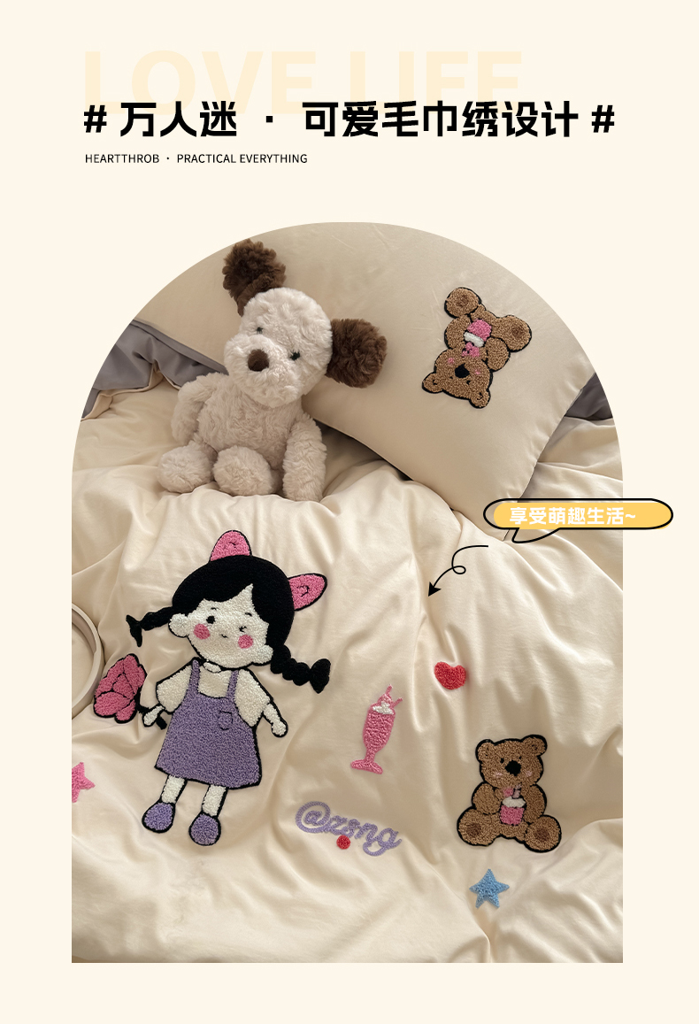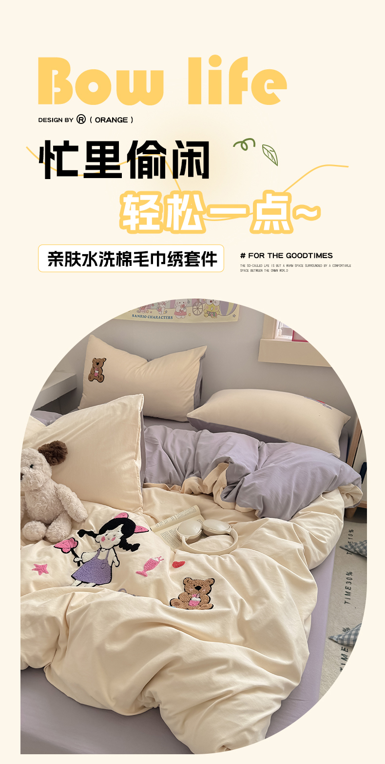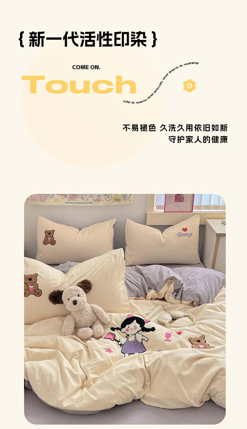 当前位置: 91家纺网 > 商品网购 > 床品套件 > 四件套 > 水洗棉四件套 > 沃朴家居 2025春夏新款亲肤水洗棉毛巾绣四件套 花朵女孩