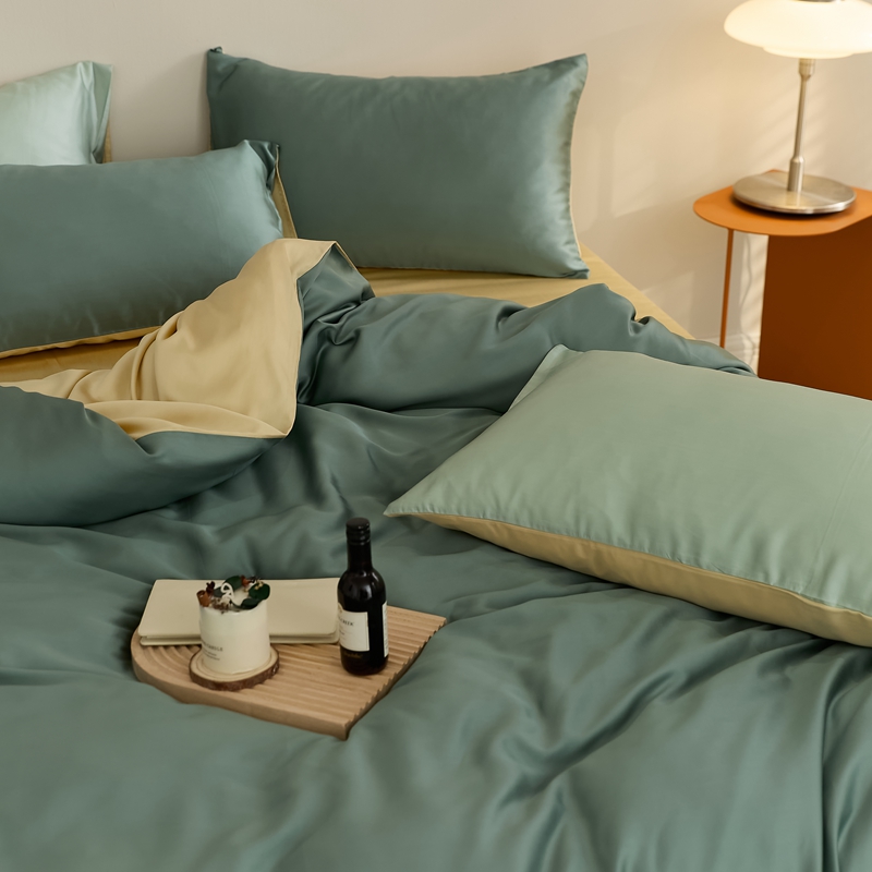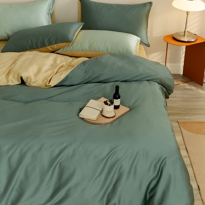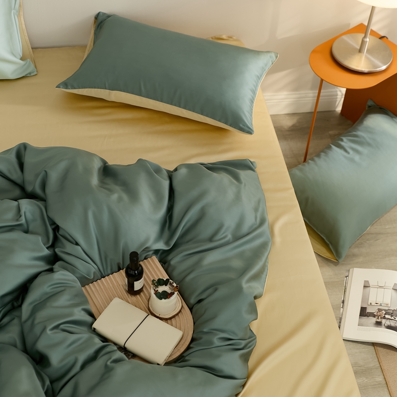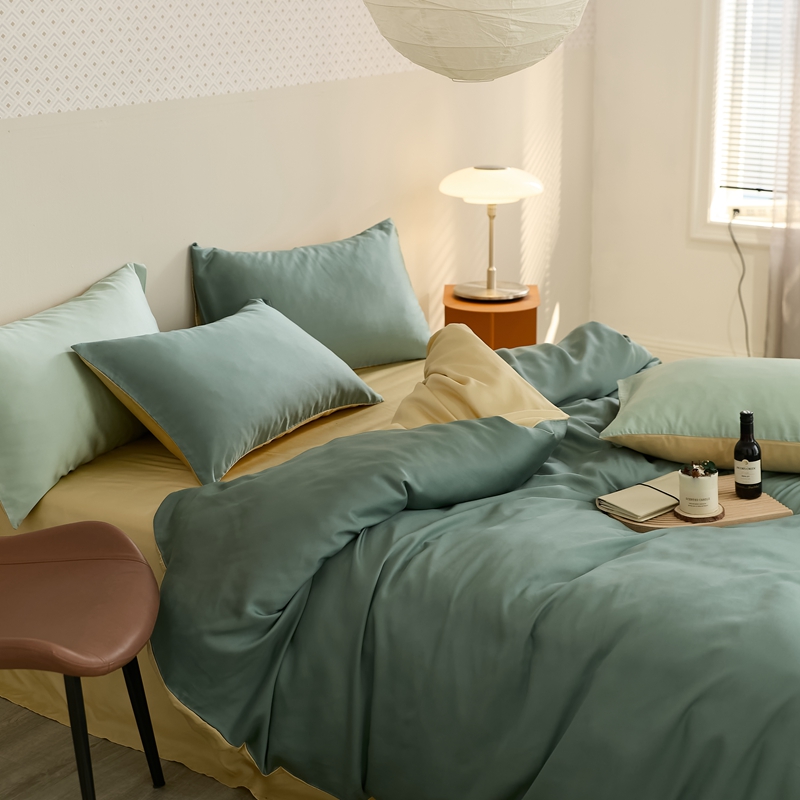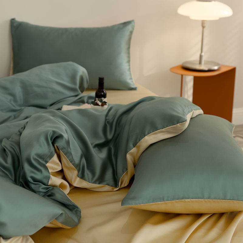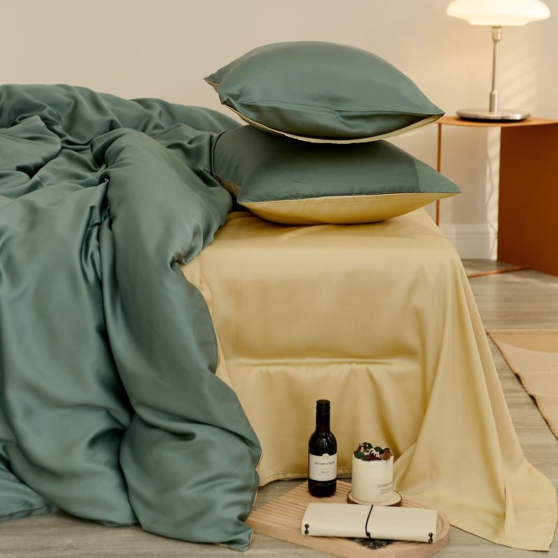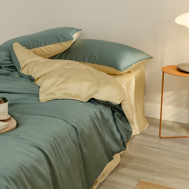 当前位置: 91家纺网 > 商品网购 > 床品套件 > 四件套 > 其它四件套 > 2025新款A类奥地利进口60支兰精天丝莱赛尔轻奢纯色双拼四件套 天青色-香槟金