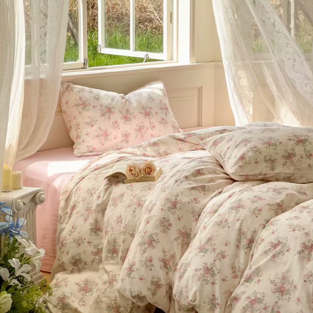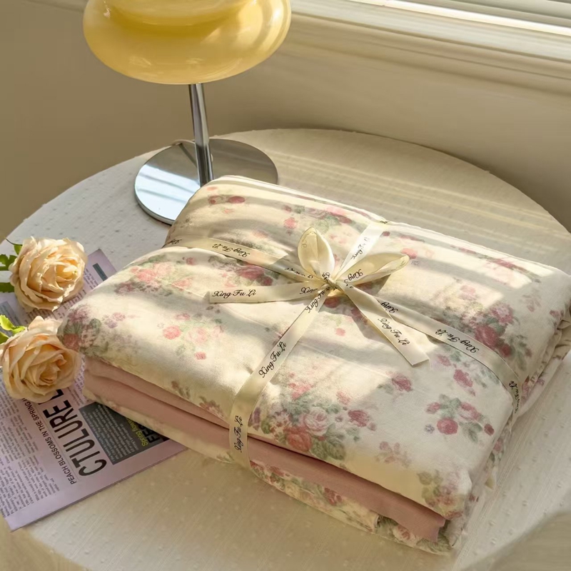 (总)栩裕纺织 2025新款全棉双层纱床盖三件套四件套,可可甜心粉,梦寐花都,抹茶小团子-咖,茉莉清风-粉,木映-绿,暮冬-紫,甜音少女-桔,樱桃奶盖-粉