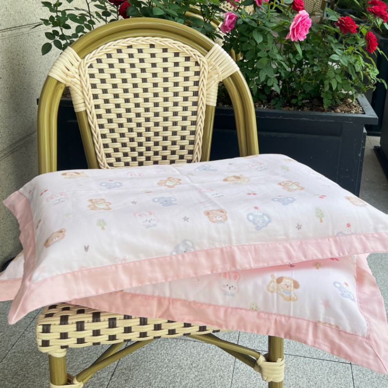 棉生活家纺 2025春夏新款A类全棉纯棉儿童纱布单枕套 枕套单件 动物派对
