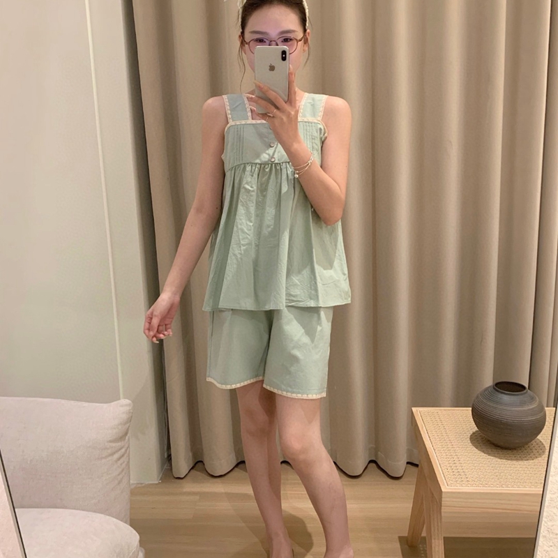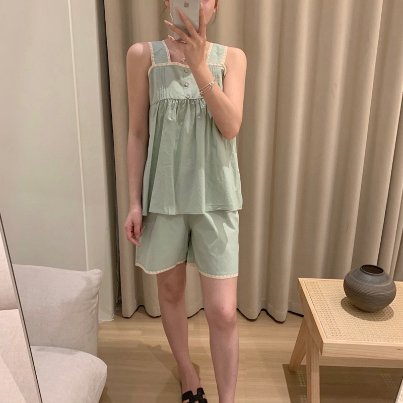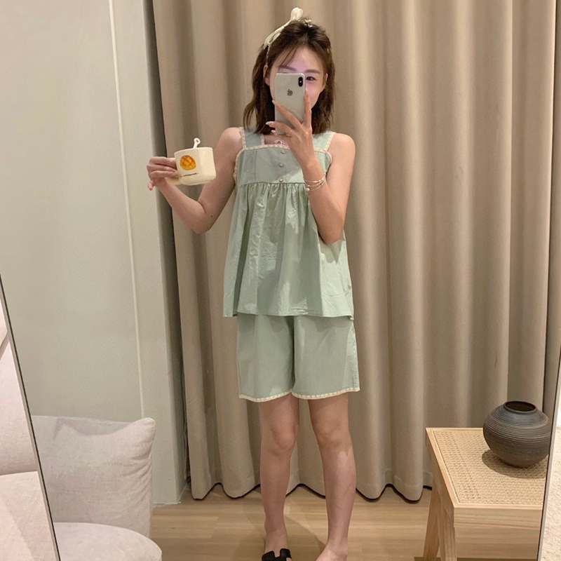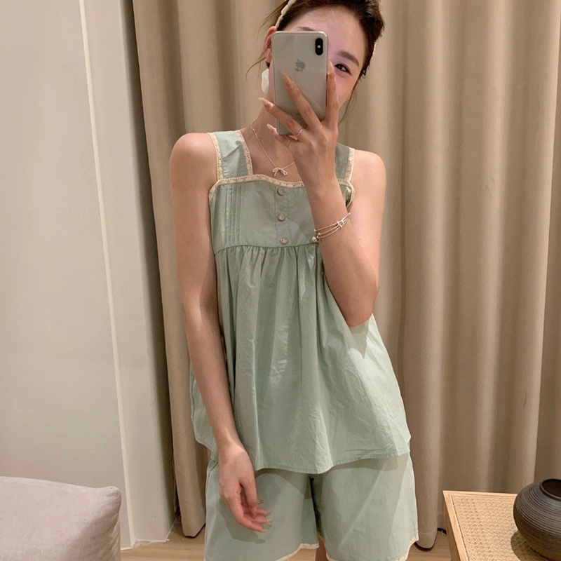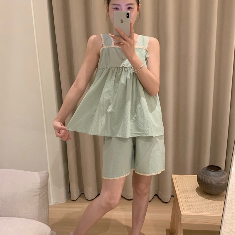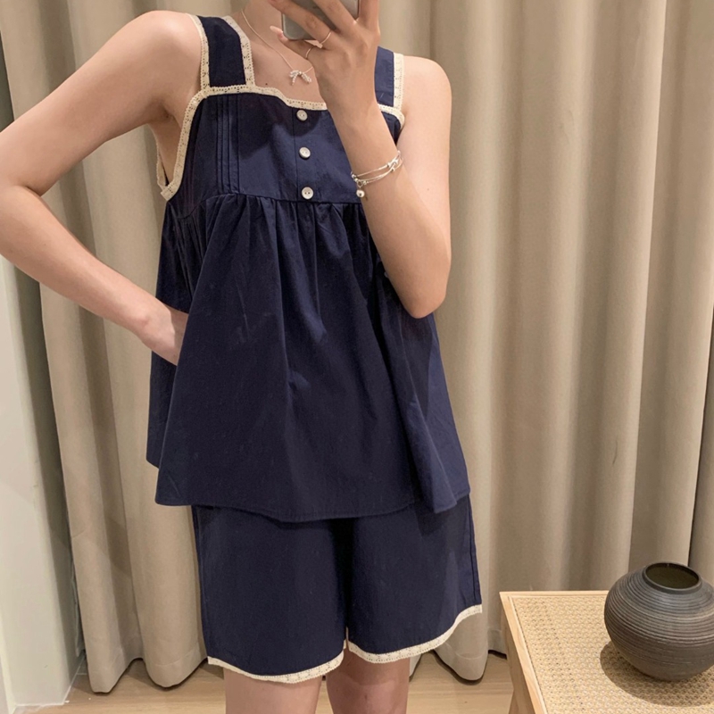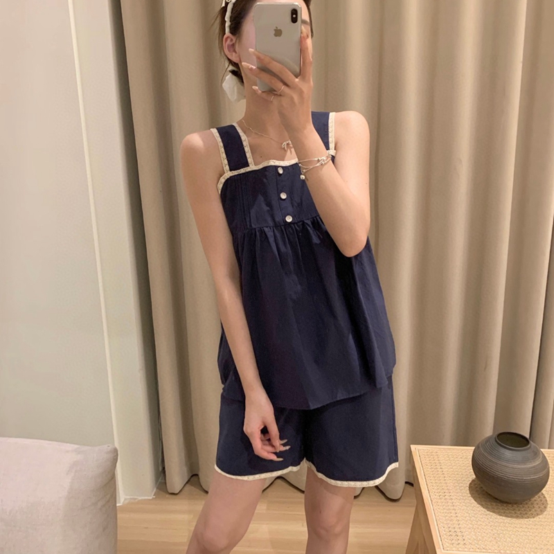 妍景家居生活馆 2025新款82958-韩系无袖吊带套装 深蓝